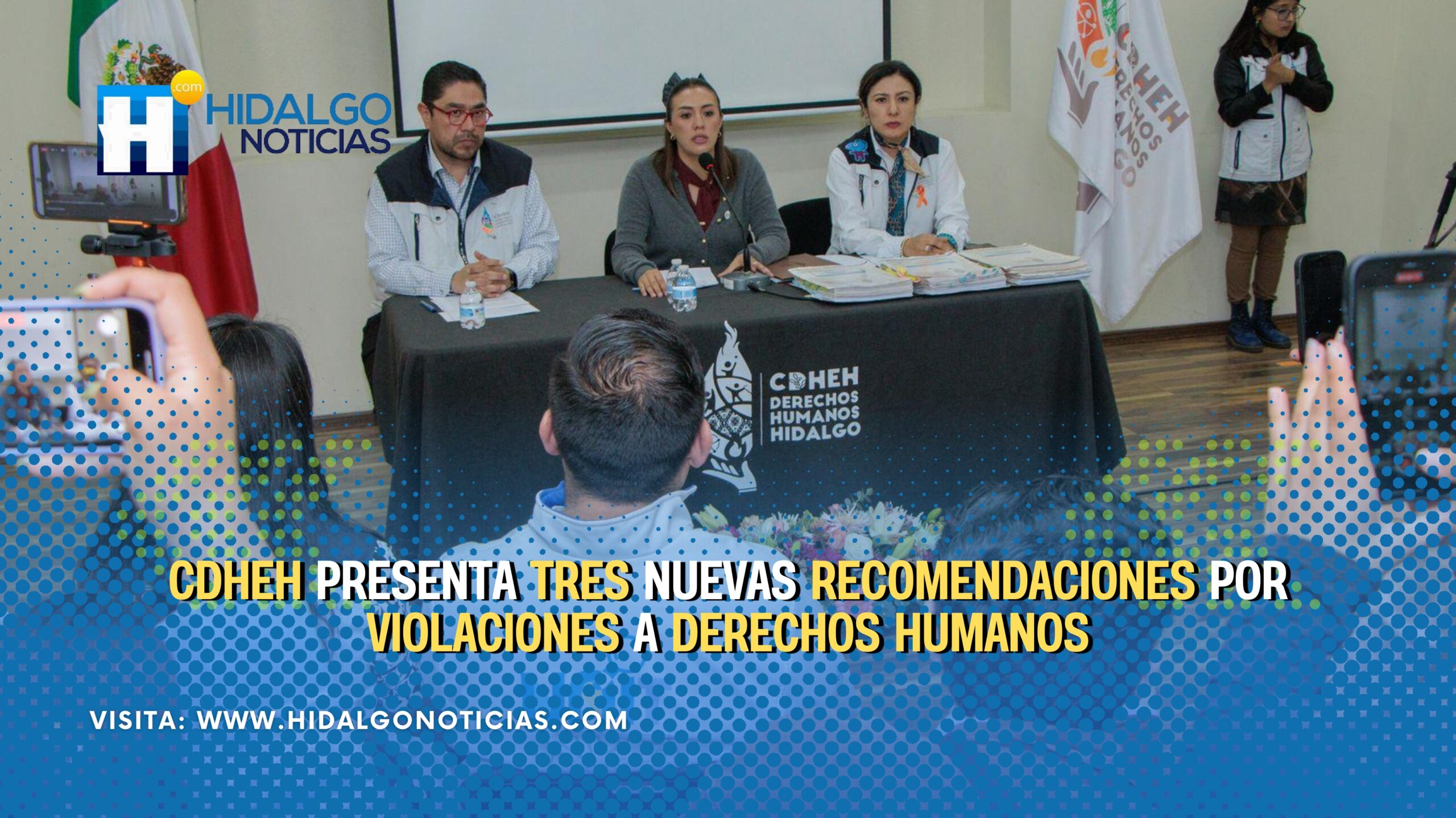 Pachuca, Hgo., 6 de julio de 2025.— La Comisión de Derechos Humanos del Estado de Hidalgo (CDHEH), encabezada por Ana Parra Bonilla, presentó en conferencia de prensa tres recomendaciones dirigidas a instancias estatales y municipales, luego de acreditar diversos actos que vulneraron los derechos fundamentales de personas en distintas regiones del estado.