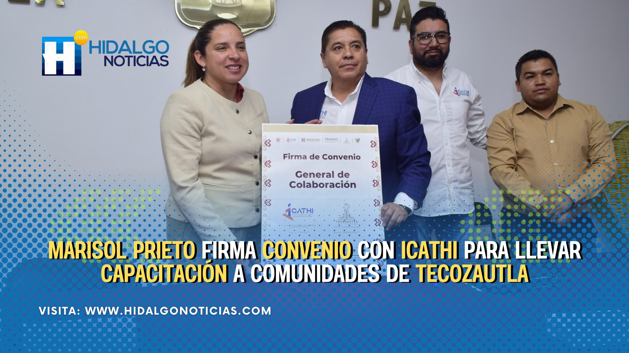 Tecozautla, Hidalgo, 18 de julio de 2025.– En un esfuerzo por fortalecer las oportunidades de desarrollo en el ámbito laboral, la presidenta municipal de Tecozautla, Marisol Prieto Avendaño, firmó un convenio de colaboración con el Instituto de Capacitación para el Trabajo del Estado de Hidalgo (Icathi).