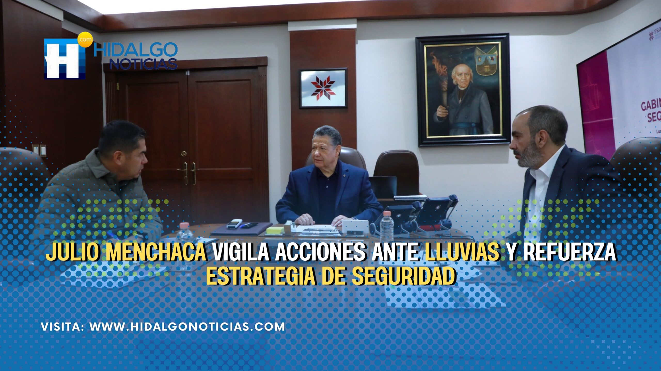 Pachuca, Hgo., 14 de julio de 2025. Durante la sesión semanal del Gabinete de Seguridad, presidida por el gobernador Julio Menchaca Salazar, se presentó un balance general de las acciones implementadas por las distintas instituciones estatales para atender emergencias derivadas de las condiciones meteorológicas recientes, así como los operativos relacionados con seguridad pública y procuración de justicia.