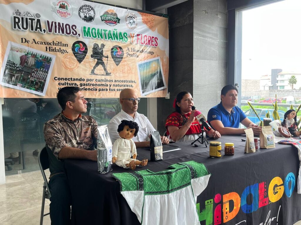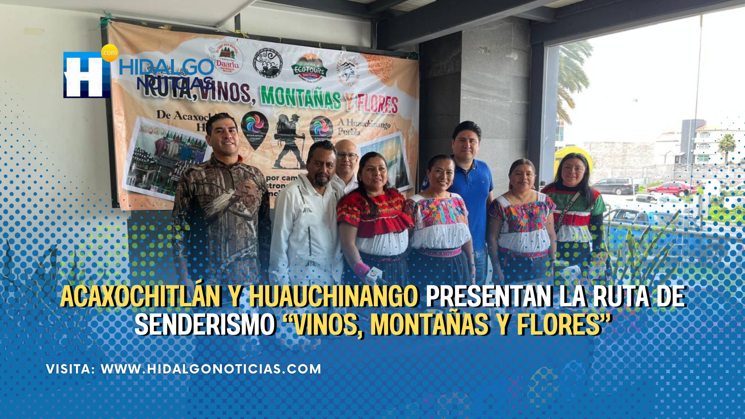 Acaxochitlán, Hidalgo, 25 de junio de 2025.– Con el objetivo de fomentar el turismo responsable y fortalecer la identidad compartida entre dos Pueblos Mágicos, fue presentada la nueva ruta de senderismo “Vinos, Montañas y Flores”, un recorrido de 33 kilómetros que conecta a los municipios de Acaxochitlán, en Hidalgo, y Huauchinango, en Puebla, a través de antiguos caminos rodeados de naturaleza, sabores tradicionales y expresiones culturales vivas.