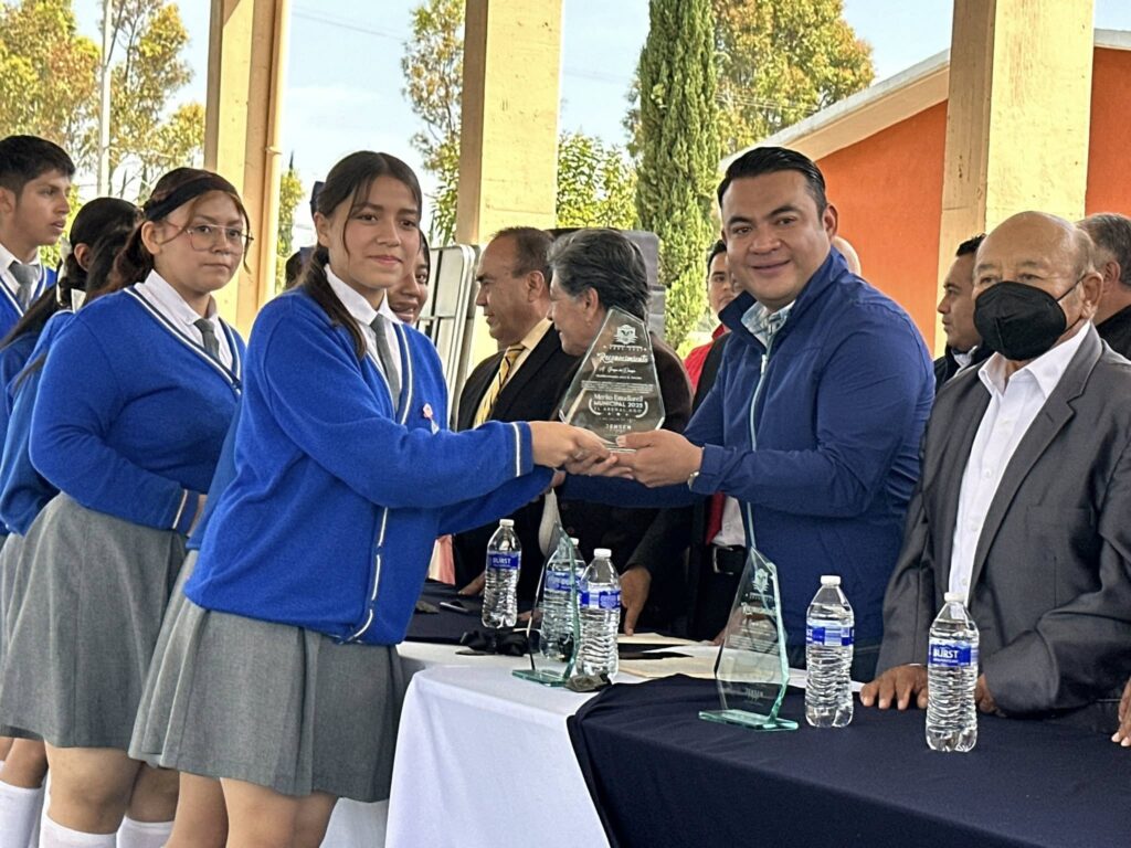 Durante el evento, se entregaron distinciones a estudiantes de nivel secundaria, telesecundaria y telebachillerato que han demostrado constancia y alto rendimiento académico, reconociendo su esfuerzo como ejemplo de compromiso con la formación educativa. La premiación se llevó a cabo en un ambiente de celebración que reunió a autoridades, docentes, familiares y compañeros.