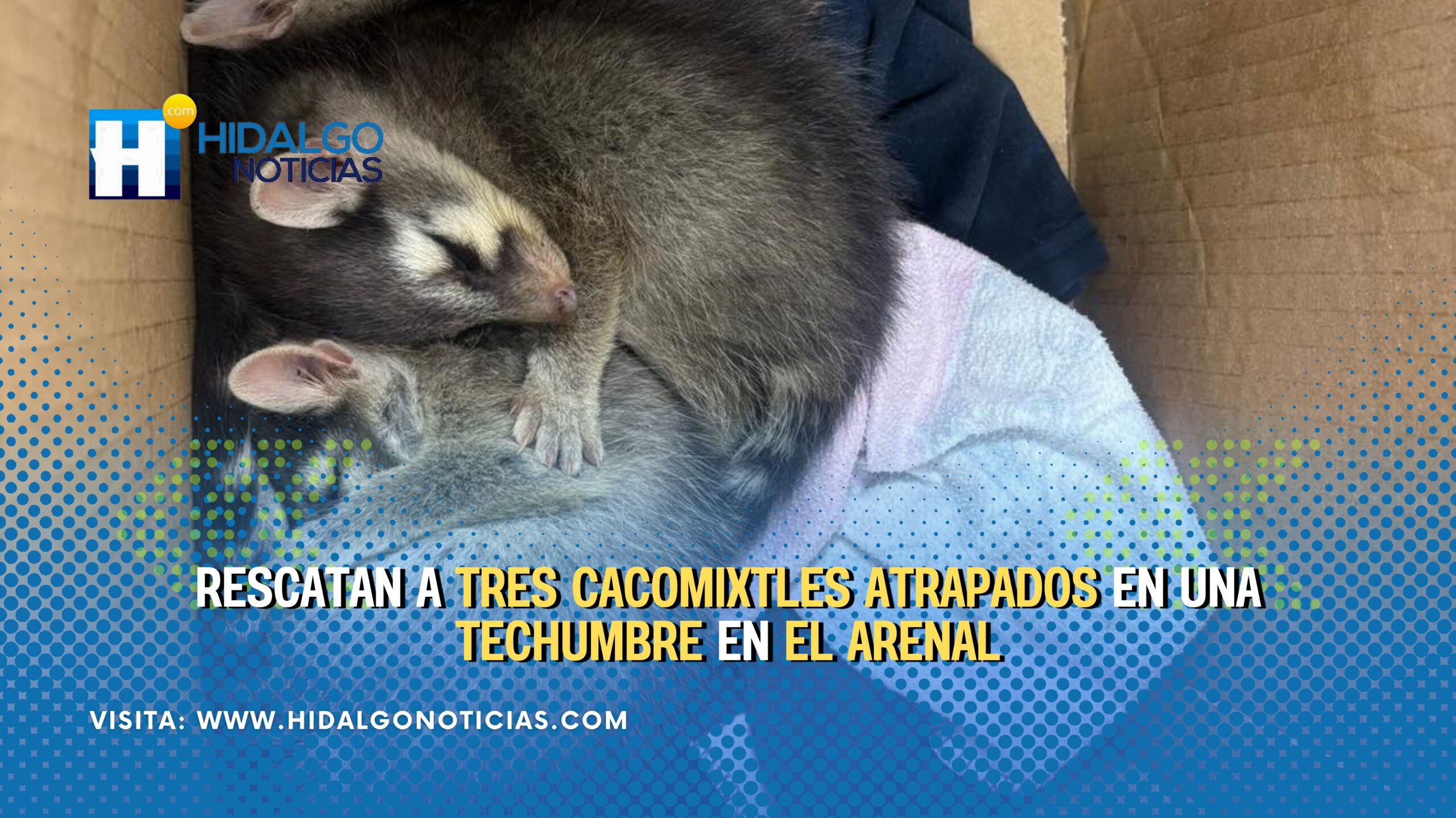 El Arenal, Hgo., 24 de julio de 2025.— Elementos de Protección Civil Municipal llevaron a cabo el rescate de tres ejemplares de cacomixtle que habían quedado atrapados en la parte alta de una techumbre de lámina, en un predio del municipio. La intervención fue posible gracias a una llamada de alerta recibida a través del sistema de emergencias 911.