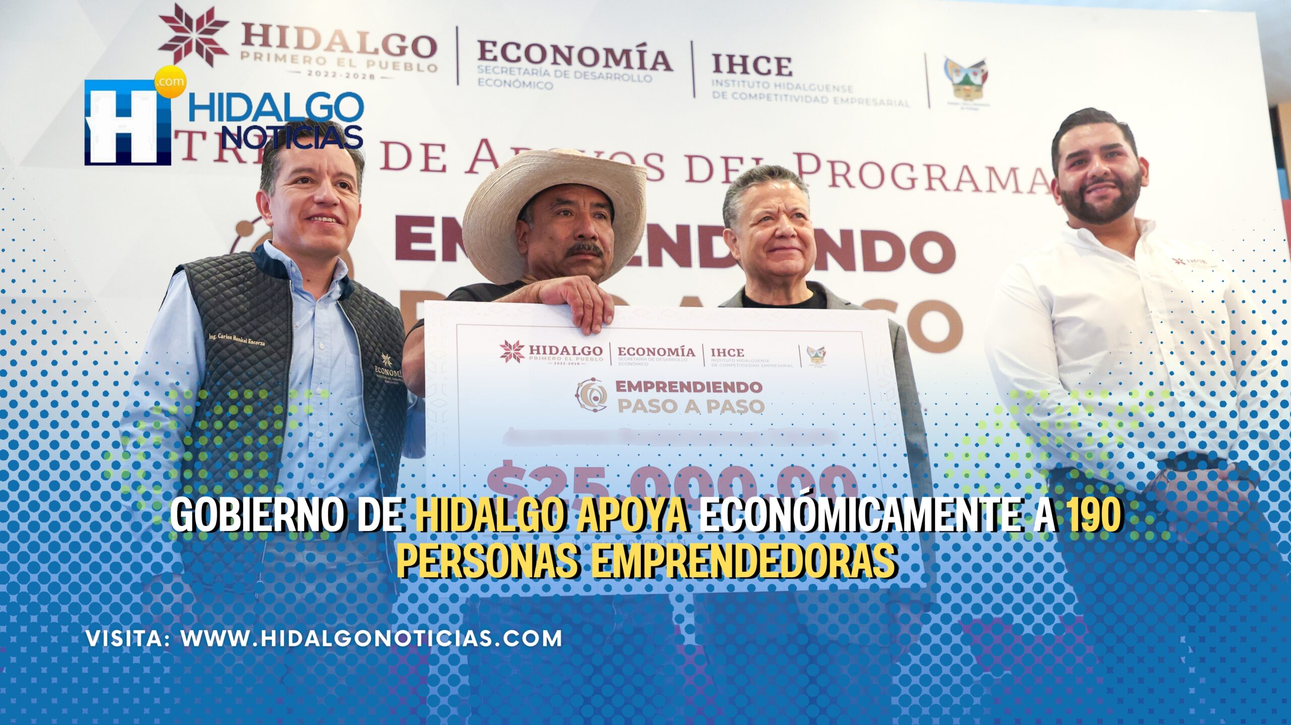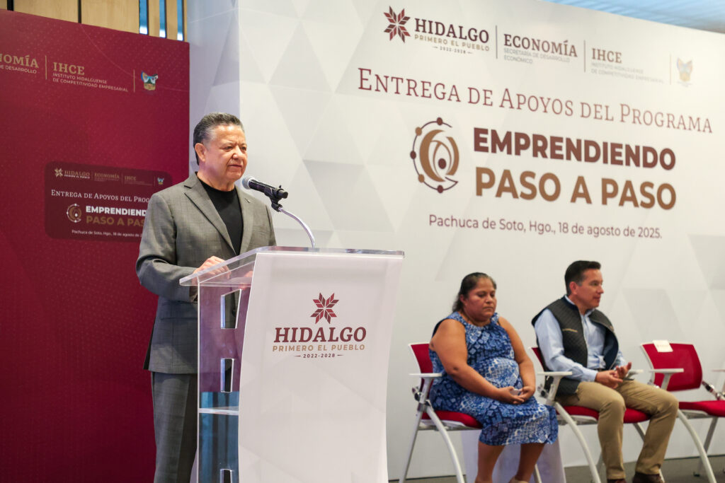 Pachuca, Hidalgo, 18 de agosto de 2025.– Con el objetivo de impulsar la economía local y respaldar a quienes buscan formalizar sus negocios, el gobernador de Hidalgo, Julio Menchaca Salazar, encabezó la entrega de apoyos económicos del programa “Emprendiendo Paso a Paso 2025”, que en esta edición benefició a 190 personas emprendedoras de 52 municipios.