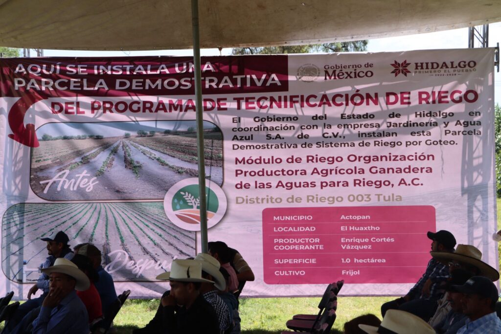 Actopan, Hgo., 29 de agosto de 2025.– En la comunidad de El Huaxtho se llevó a cabo la presentación de una parcela demostrativa de riego por goteo, acción enmarcada dentro del Programa Federal de Tecnificación de Riego, cuyo propósito es impulsar la productividad agrícola y fomentar el uso responsable y eficiente del agua en el campo.
