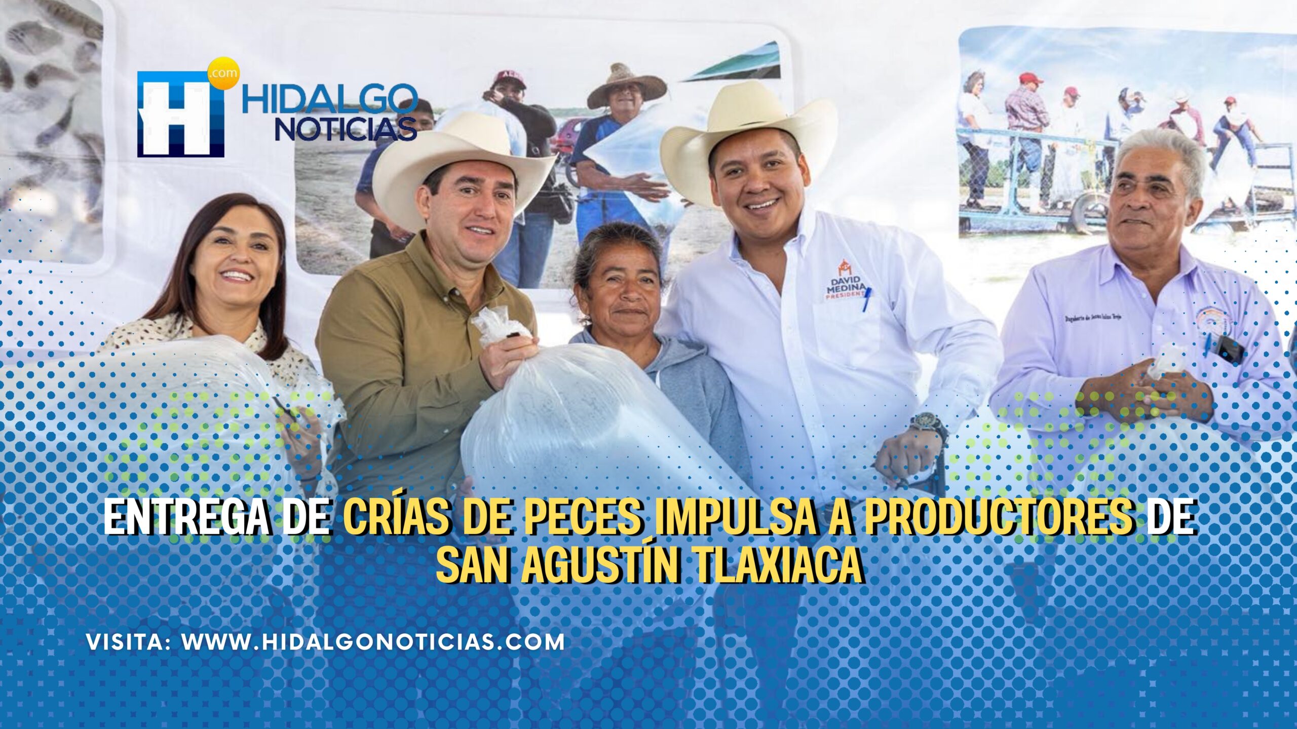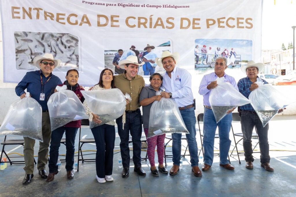 San Agustín Tlaxiaca, Hgo., 11 de septiembre de 2025.– Con el objetivo de fortalecer la producción acuícola y apoyar directamente a las familias del campo, el secretario de Agricultura y Desarrollo Rural de Hidalgo, Napoleón González Pérez, acompañado por el presidente municipal Mario David Medina, encabezó la entrega de crías de peces a productoras y productores del municipio.