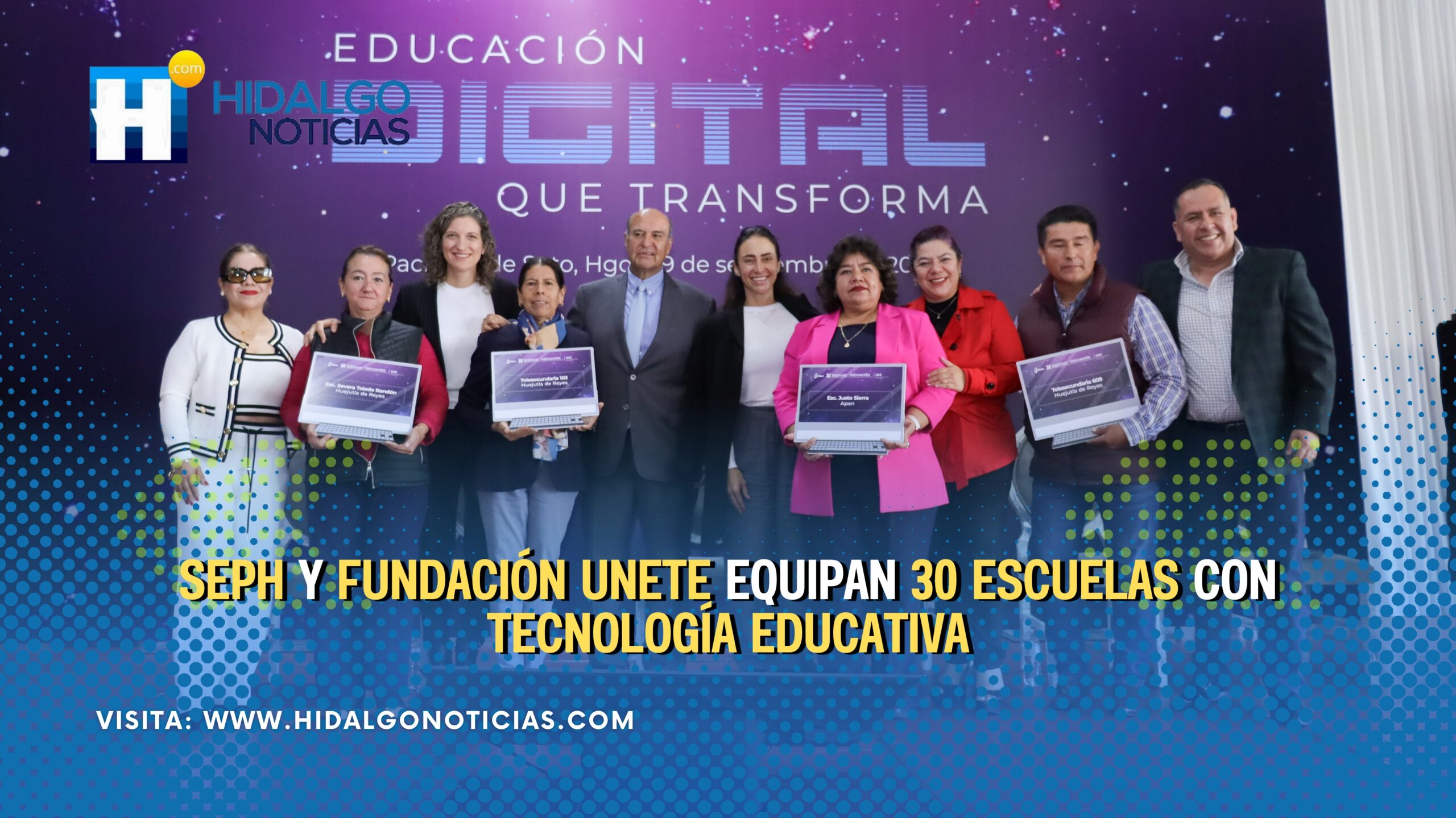 Pachuca, Hidalgo, 29 de septiembre de 2025.– Con una inversión de cinco millones de pesos, la Secretaría de Educación Pública de Hidalgo (SEPH), en coordinación con la Unión de Empresarios para la Tecnología en la Educación A.C. (UNETE), entregó equipamiento tecnológico a 30 escuelas de la entidad con el propósito de fortalecer la calidad educativa y garantizar mayor equidad en el aprendizaje a través de herramientas digitales.