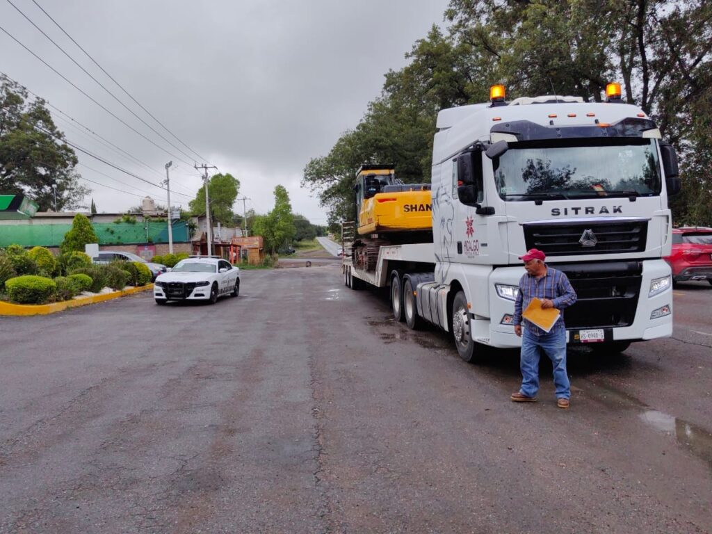 La Dirección General de Conservación de Carreteras Estatales (DGCCE) envió una excavadora y un cargador frontal desde el Centro Estatal de Maquinaria para el Desarrollo (CEMD). El traslado se complicó debido a las dimensiones de las unidades y las curvas pronunciadas de la vialidad, por lo que la maquinaria tuvo que descender de los tráileres para avanzar directamente sobre el camino.