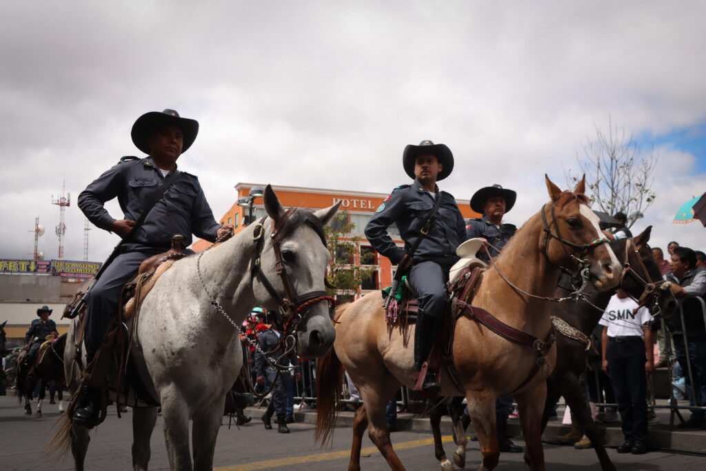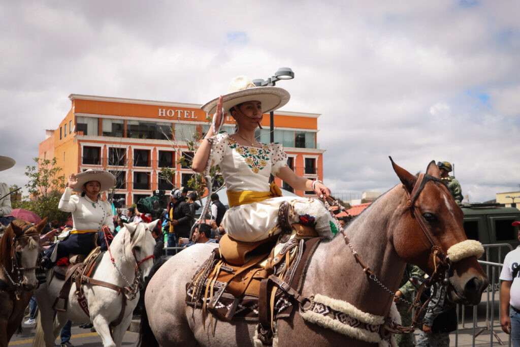 El desfile incluyó la participación de 14 jinetes y caballos del Centro Ecuestre El Moro; 40 jinetes y 40 caballos de la Asociación de Charros de Pachuca; así como 150 jinetes y 150 caballos de Cabalgantes del Estado.