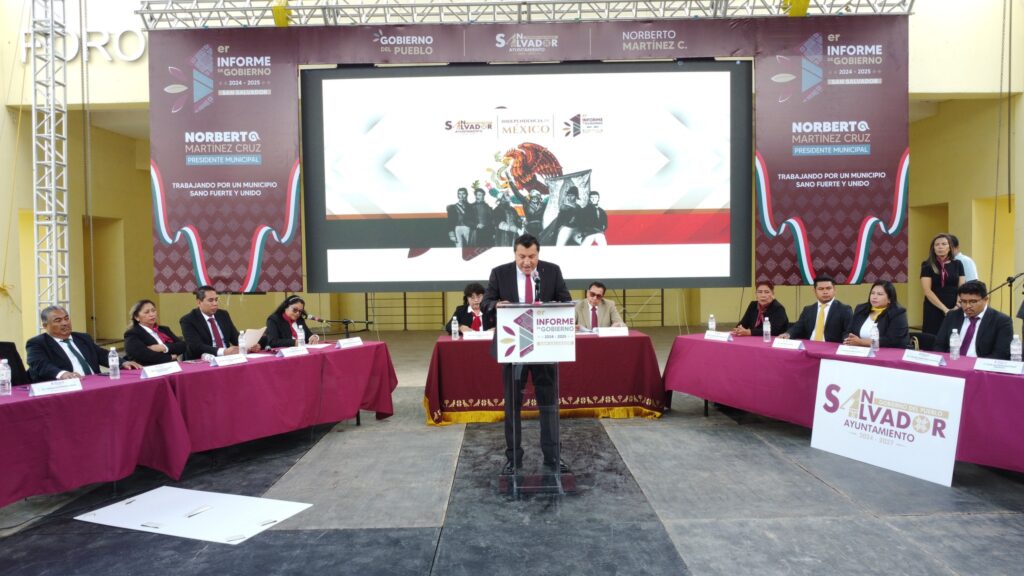 San Salvador, Hgo., 15 de septiembre de 2025.– El alcalde de San Salvador, Dr. Norberto Martínez Cruz, presentó ante la ciudadanía su Primer Informe de Gobierno, ejercicio de rendición de cuentas en el que dio a conocer los avances alcanzados durante el primer año de la administración municipal 2024–2027.