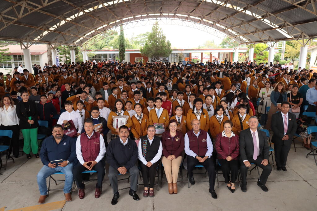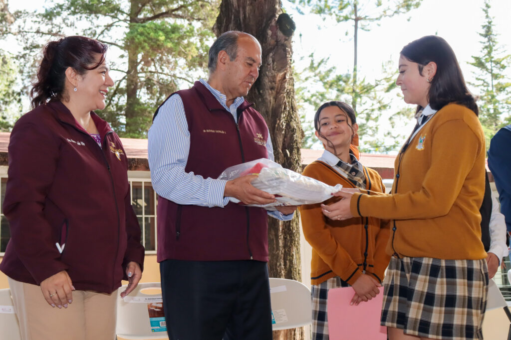 Más tarde, en la Secundaria General ‘3 de Junio’ de Tepeji del Río, la subsecretaria de Educación Básica, Nancy Adriana León Vite, encabezó la entrega de útiles, uniformes, calzado y material tecnológico con una inversión de 172 mil 994 pesos, en beneficio de estudiantes de las primarias Benito Juárez y Melchor Ocampo, así como de la telesecundaria 330.