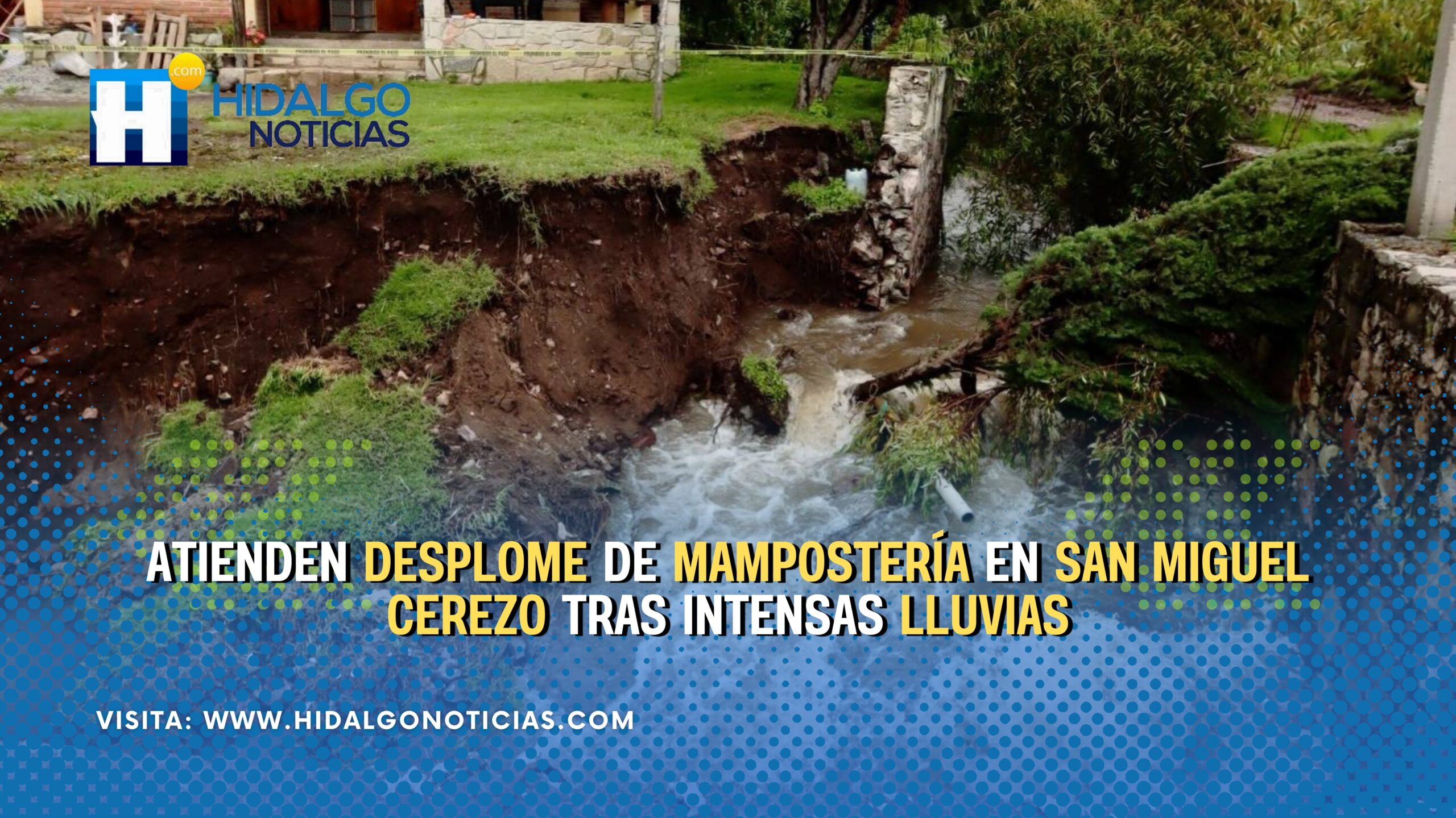 Pachuca de Soto, Hidalgo, 11 de octubre de 2025.– En cumplimiento a las indicaciones del presidente municipal Jorge Alberto Reyes, personal de Protección Civil y cuerpos de emergencia acudieron desde las primeras horas del día a la comunidad de San Miguel Cerezo para atender un reporte ciudadano sobre el desplome de mampostería del dren pluvial que afectó una vivienda, a consecuencia de las intensas lluvias registradas recientemente.