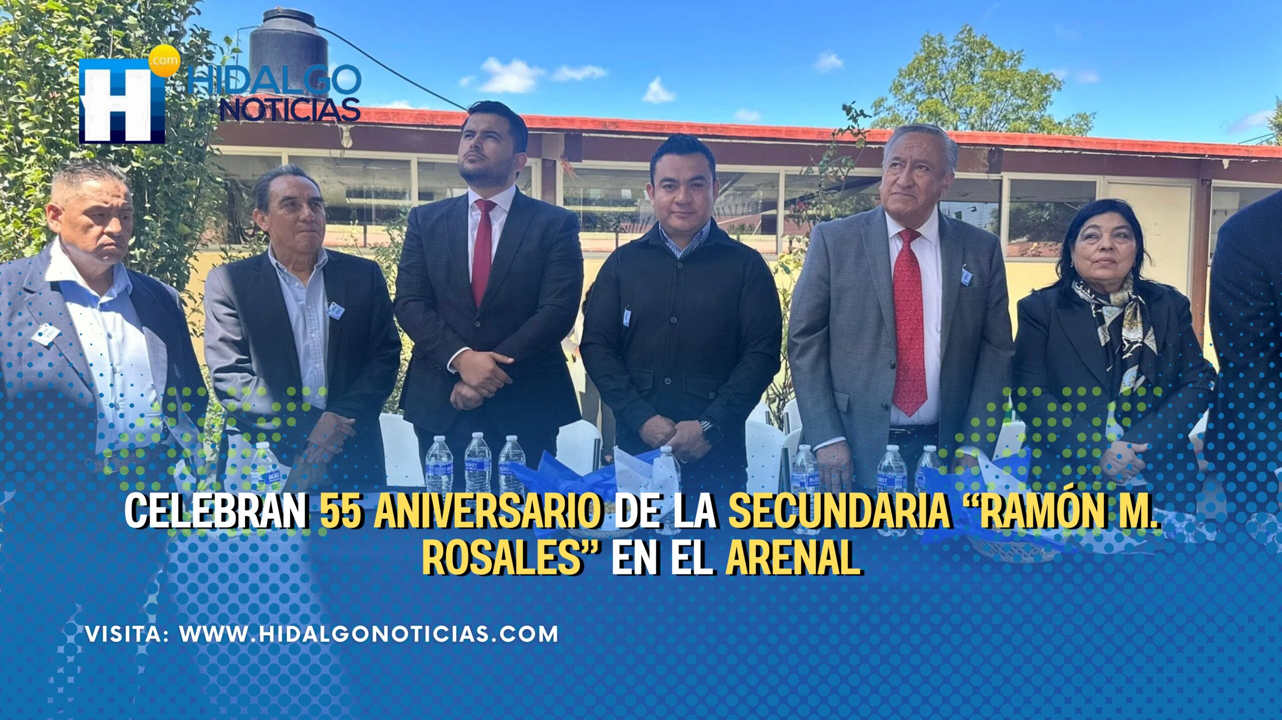 El Arenal, Hidalgo, 3 de octubre de 2025. El presidente municipal, Lic. Jensen Oropeza, acompañó a la comunidad educativa en la conmemoración del 55 aniversario de la Secundaria General Ramón M. Rosales, ubicada en la cabecera municipal.