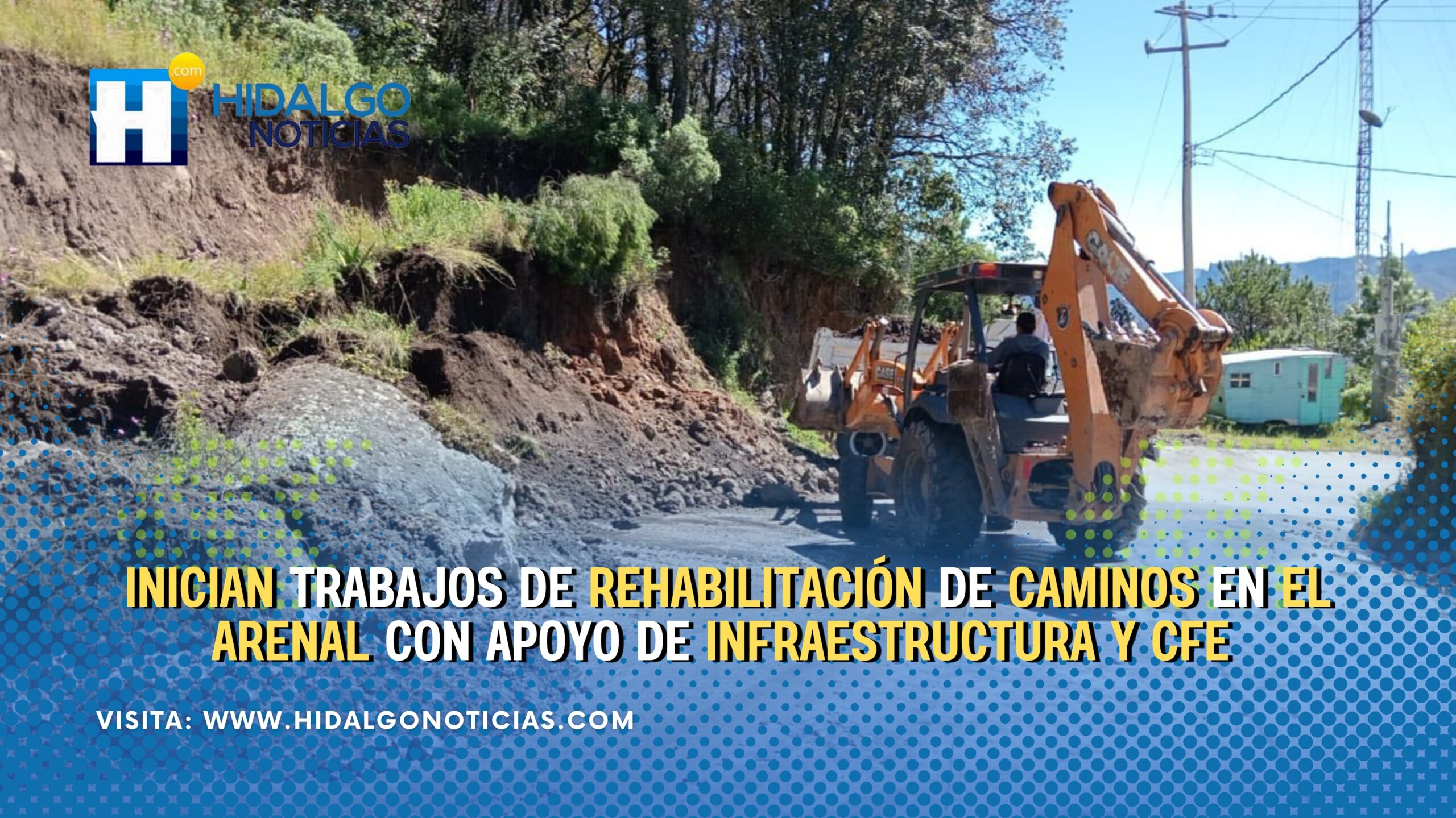 El Arenal, Hidalgo, 13 de octubre de 2025.– El Gobierno Municipal de El Arenal agradeció el respaldo de la Secretaría de Infraestructura, Comunicaciones y Transportes, por el envío de maquinaria que ha permitido iniciar los trabajos de rehabilitación en la parte alta del municipio, donde los caminos resultaron afectados por los recientes deslaves y desprendimientos de rocas ocasionados por las lluvias.
