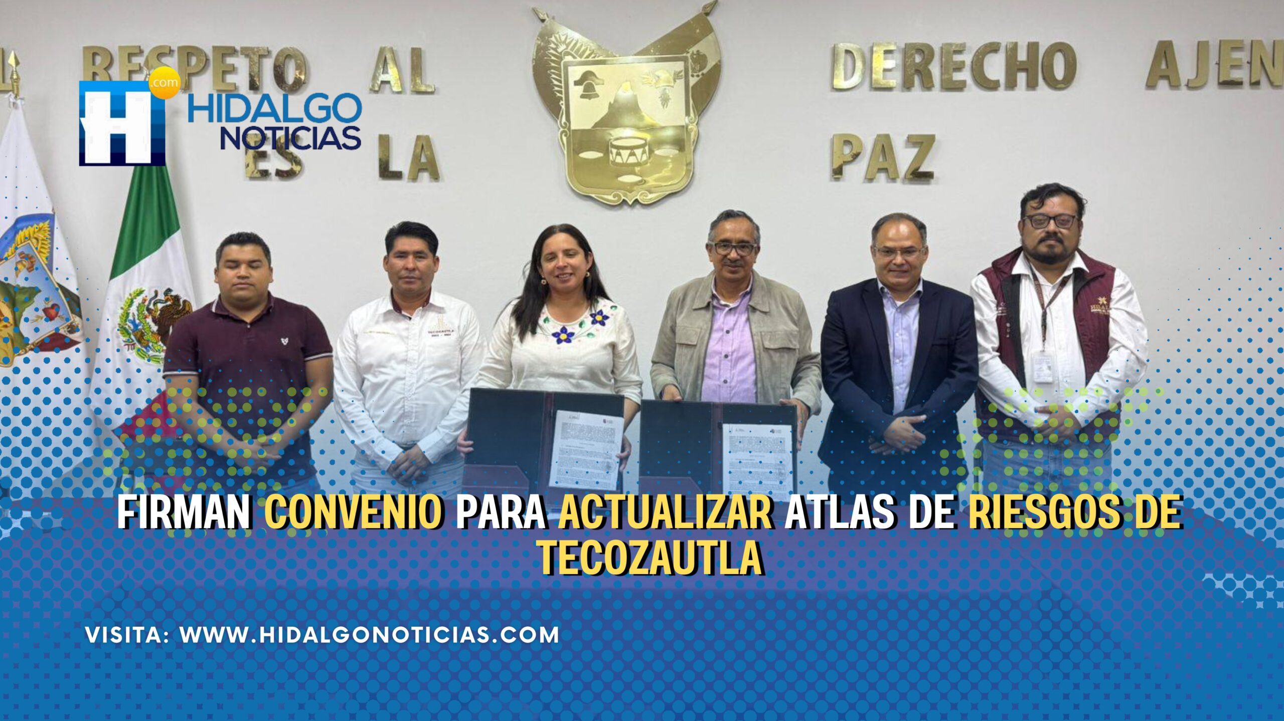 Tecozautla, Hidalgo, 31 de octubre de 2025. El Colegio del Estado de Hidalgo (CEH) y el Ayuntamiento de Tecozautla formalizaron un convenio de colaboración para la actualización del Atlas de Peligros y/o Riesgos Naturales del municipio, un instrumento técnico que permitirá fortalecer las estrategias de prevención, mitigación y reducción de desastres.