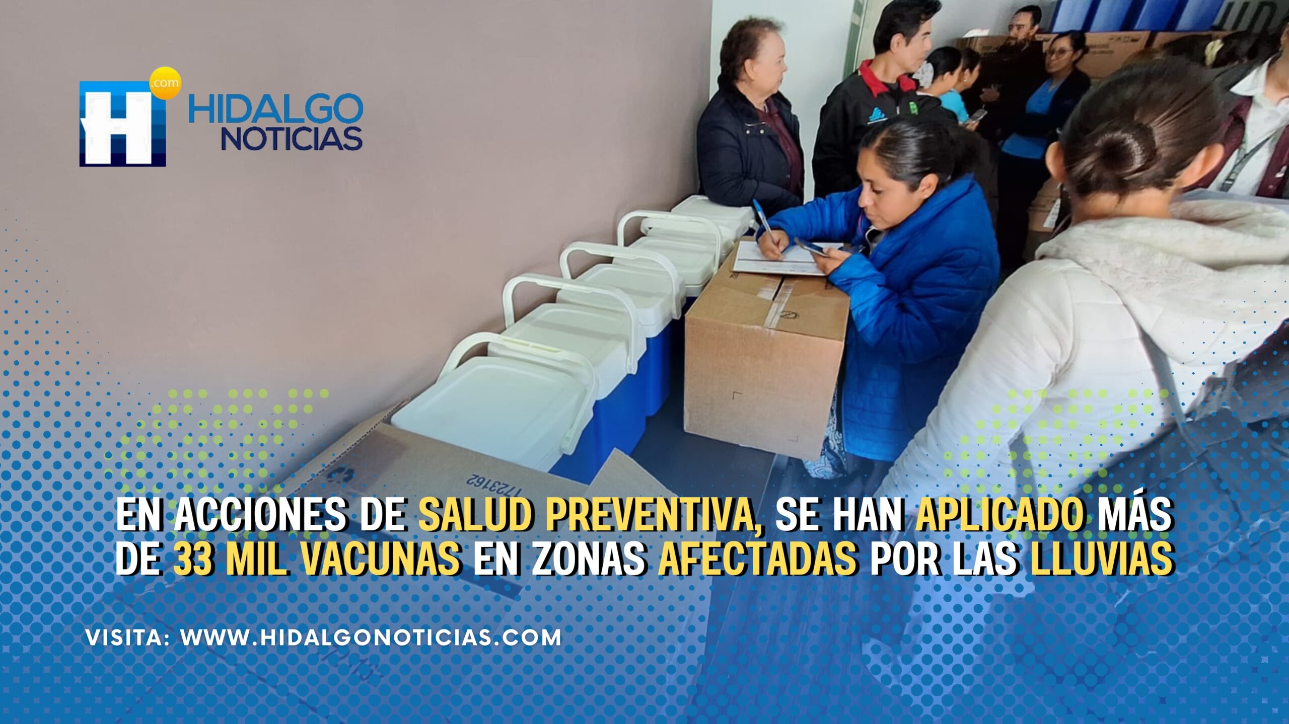 Hasta el momento, la SSH ha aplicado 33,119 dosis de vacunas como parte de las estrategias sanitarias desplegadas en las zonas impactadas. Las inmunizaciones corresponden a Td (Tétanos y Difteria), influenza, Covid-19 y neumococo, dirigidas a prevenir infecciones respiratorias, complicaciones derivadas de las inundaciones y padecimientos transmitidos por el contacto con agua o lodo contaminado.