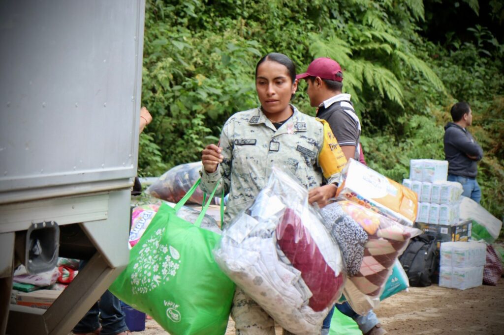 Con el respaldo del Ejército Mexicano y la Fuerza Aérea Mexicana, a través del Plan DN-III-E, se implementó un puente aéreo que ha permitido la entrega de mil 138 despensas en distintas zonas del estado: Huehuetla (569 despensas y 50 cobijas), Zimapán (100 despensas), Tianguistengo (449 despensas) y 20 más en traslado hacia comunidades de difícil acceso.