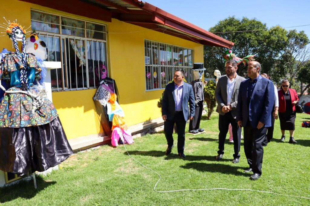 Durante su visita, el secretario de Educación también recorrió el jardín de niños Metzeri, donde convivió con alumnas, alumnos, docentes y padres de familia, y presenció las actividades culturales relacionadas con la celebración del Día de Muertos, ejemplo del fortalecimiento de las tradiciones mexicanas desde la educación temprana.