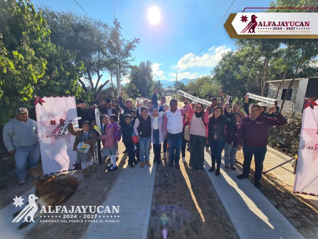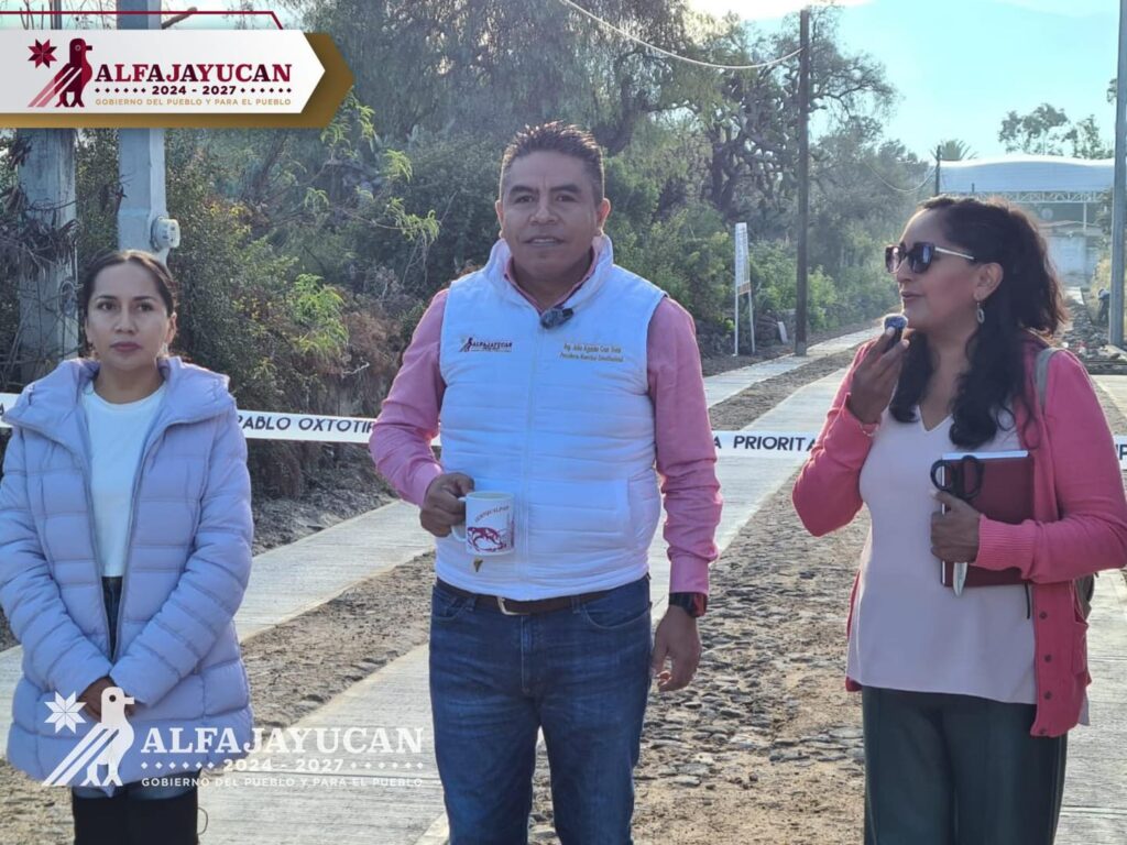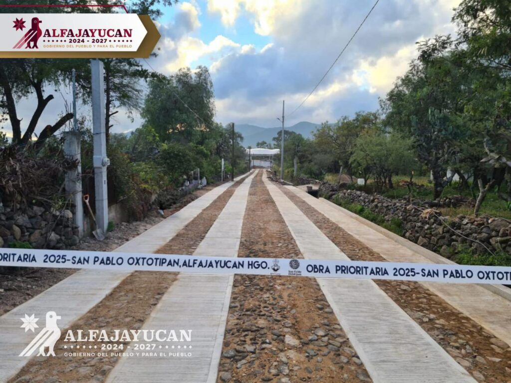Alfajayucan, Hgo., 19 de octubre de 2025.– En días recientes el gobierno municipal de Alfajayucan, encabezado por el presidente constitucional Julio Agustín Cruz Tovar, visitó la comunidad de San Pablo Oxtotipan para llevar a cabo la inauguración de las huellas de concreto y empedrado en la calle General Felipe Ángeles, una obra que fortalecerá la infraestructura local y mejorará la calidad de vida de las familias.