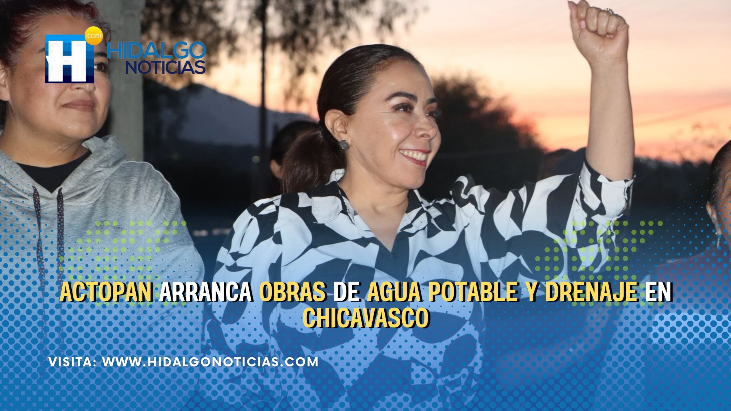 Actopan, Hidalgo.– La presidenta municipal Imelda Cuéllar Cano encabezó el arranque de los trabajos para la construcción de nuevas líneas de agua potable y drenaje sanitario en la comunidad de Chicavasco, una acción que impactará positivamente en la calidad de vida de más de 1,500 habitantes.
