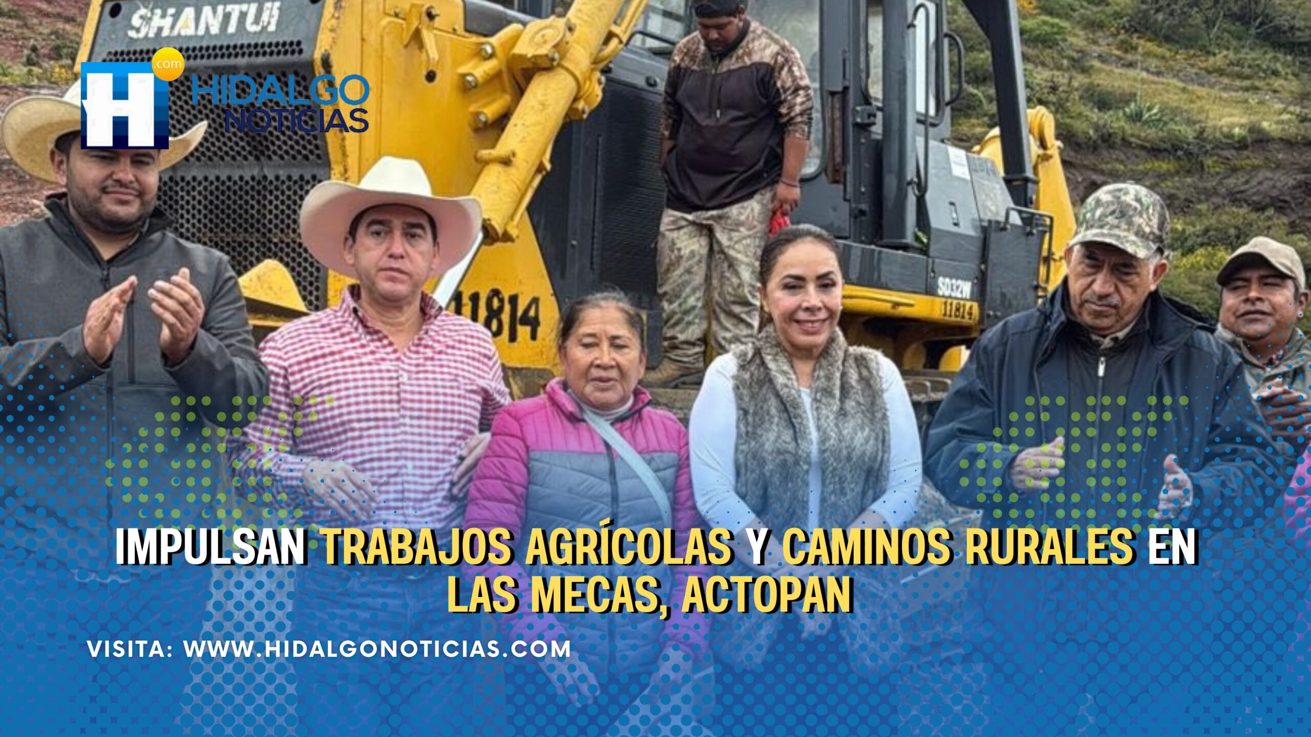 En la comunidad de Las Mecas, una de las zonas más altas y productivas del municipio de Actopan, la presidenta municipal Imelda Cuéllar Cano acompañó al secretario de Agricultura y Desarrollo Rural de Hidalgo, Napoleón González Pérez, durante el banderazo de inicio de los trabajos de renivelación, preparación de tierras y apertura de caminos rurales, acciones que beneficiarán directamente a las y los productores agrícolas de la región.