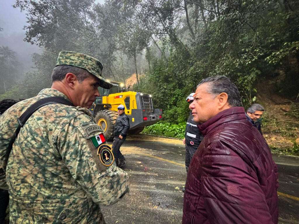 Durante su recorrido, Menchaca constató que aún persisten desgajamientos y afectaciones en diversas carreteras, principalmente en la comunidad de Atizapán, que permanece parcialmente incomunicada. El mandatario giró la instrucción de trasladar maquinaria pesada para remover escombros y liberar los caminos lo antes posible.