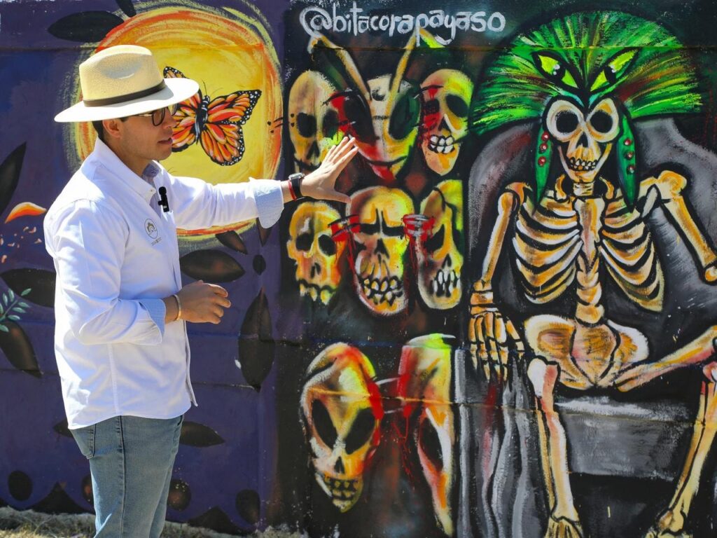 Pachuca, Hidalgo, 27 de octubre de 2025.– En el marco de las actividades culturales impulsadas por el Ayuntamiento de Pachuca, encabezado por el alcalde Jorge Reyes, se inauguró una serie de murales urbanos con temática del Día de Muertos en la ciclovía ubicada detrás de la Preparatoria Número 1, donde jóvenes artistas transformaron el espacio público en un homenaje visual a una de las tradiciones más emblemáticas de México.