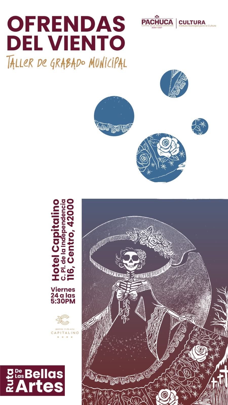 El Instituto Municipal para la Cultura de Pachuca invita a la ciudadanía a disfrutar de la séptima exposición del ciclo cultural Ruta de las Bellas Artes, titulada “Ofrendas del Viento”, una muestra colectiva que reúne el talento de artistas locales formados en el Taller Municipal de Dibujo y Grabado.