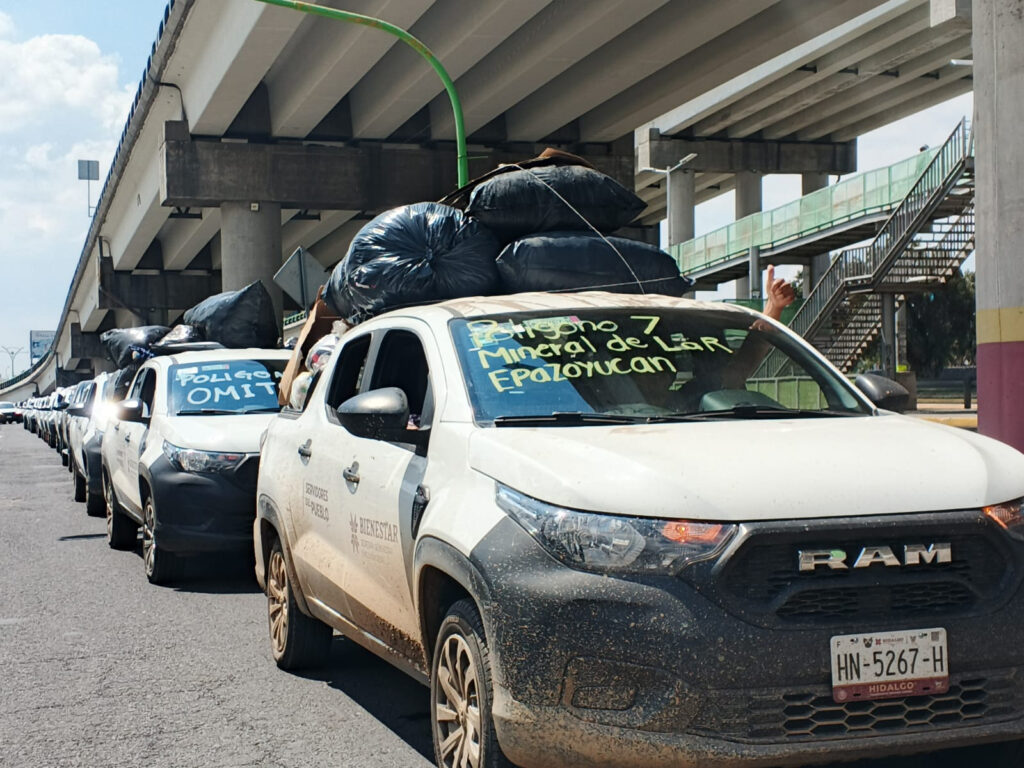 El operativo partió desde las oficinas regionales hacia el Aeropuerto Juan Guillermo Villasana, en Pachuca, donde servidores del pueblo realizaron la descarga de los apoyos donados por la ciudadanía hidalguense, en un acto de solidaridad y trabajo conjunto a favor de quienes enfrentan los efectos de la emergencia.