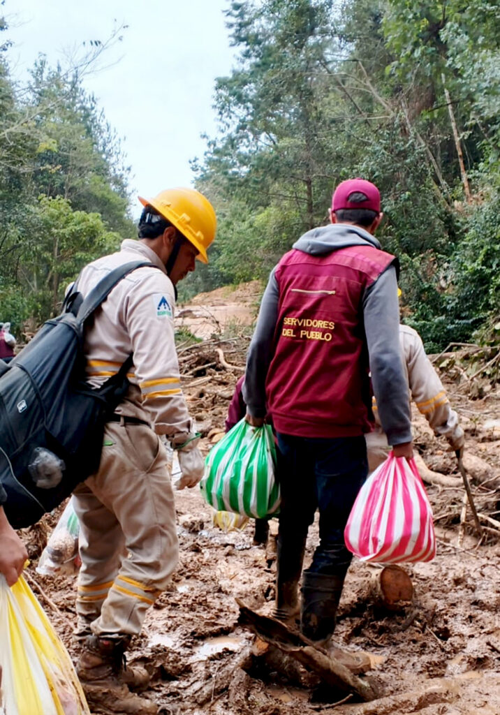 Más de 350 servidores, servidoras y personal logístico de la Sebiso se encuentran desplegados en las zonas más dañadas, coordinando acciones de auxilio y recuperación. Las 27 Casas del Pueblo han sido habilitadas como centros de operación, y su personal participa en labores de limpieza, remoción de escombros, retiro de árboles y lodo en caminos federales, estatales y municipales.