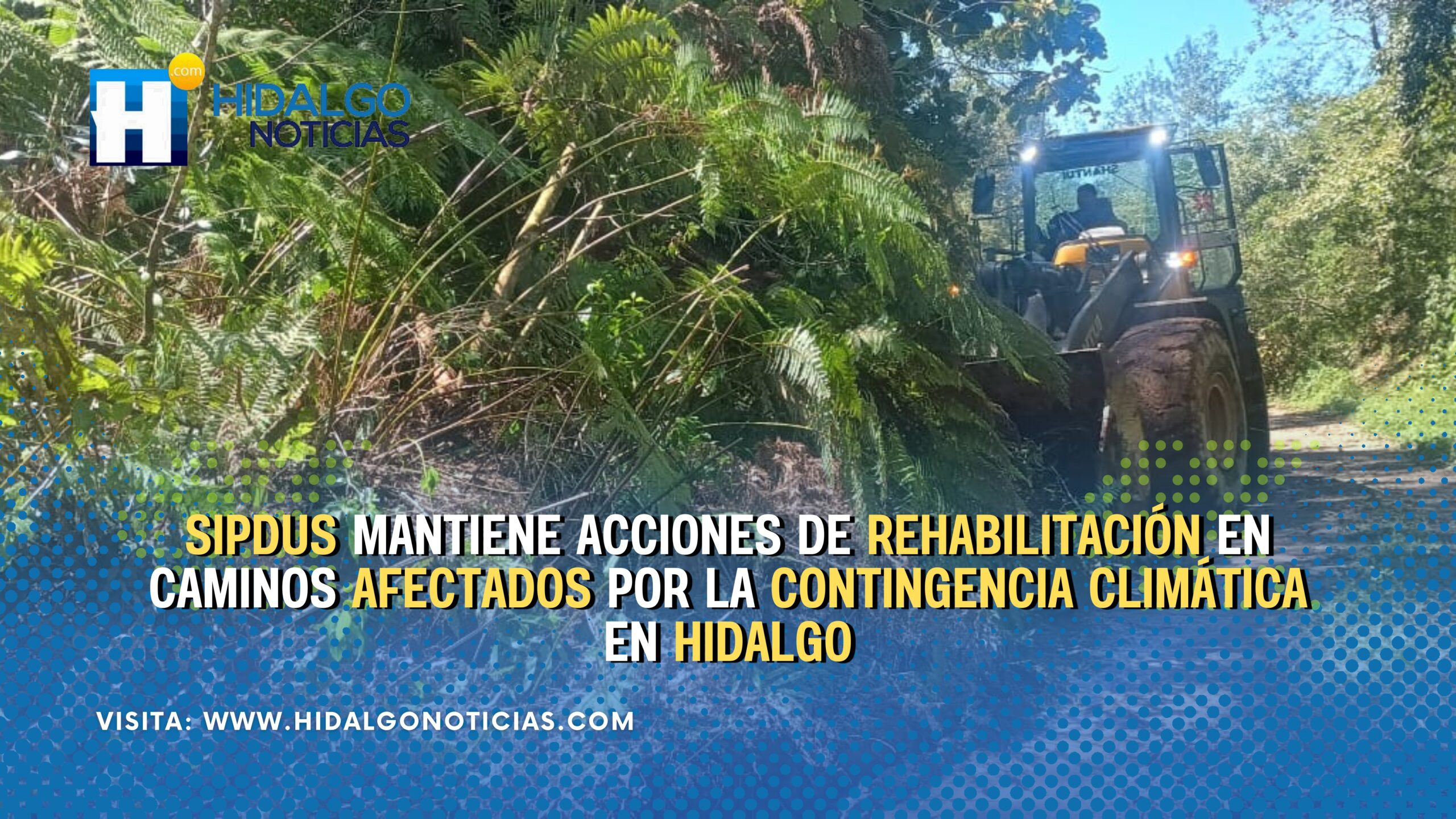Pachuca, Hidalgo, 14 de octubre de 2025.– En cumplimiento a las instrucciones del gobernador Julio Menchaca Salazar, la Secretaría de Infraestructura Pública y Desarrollo Urbano Sostenible (SIPDUS) mantiene de manera continua los trabajos de rehabilitación y atención en caminos y carreteras estatales afectados por la contingencia climática que impactó a las regiones de la Sierra Alta, Sierra Baja y Otomí-Tepehua.