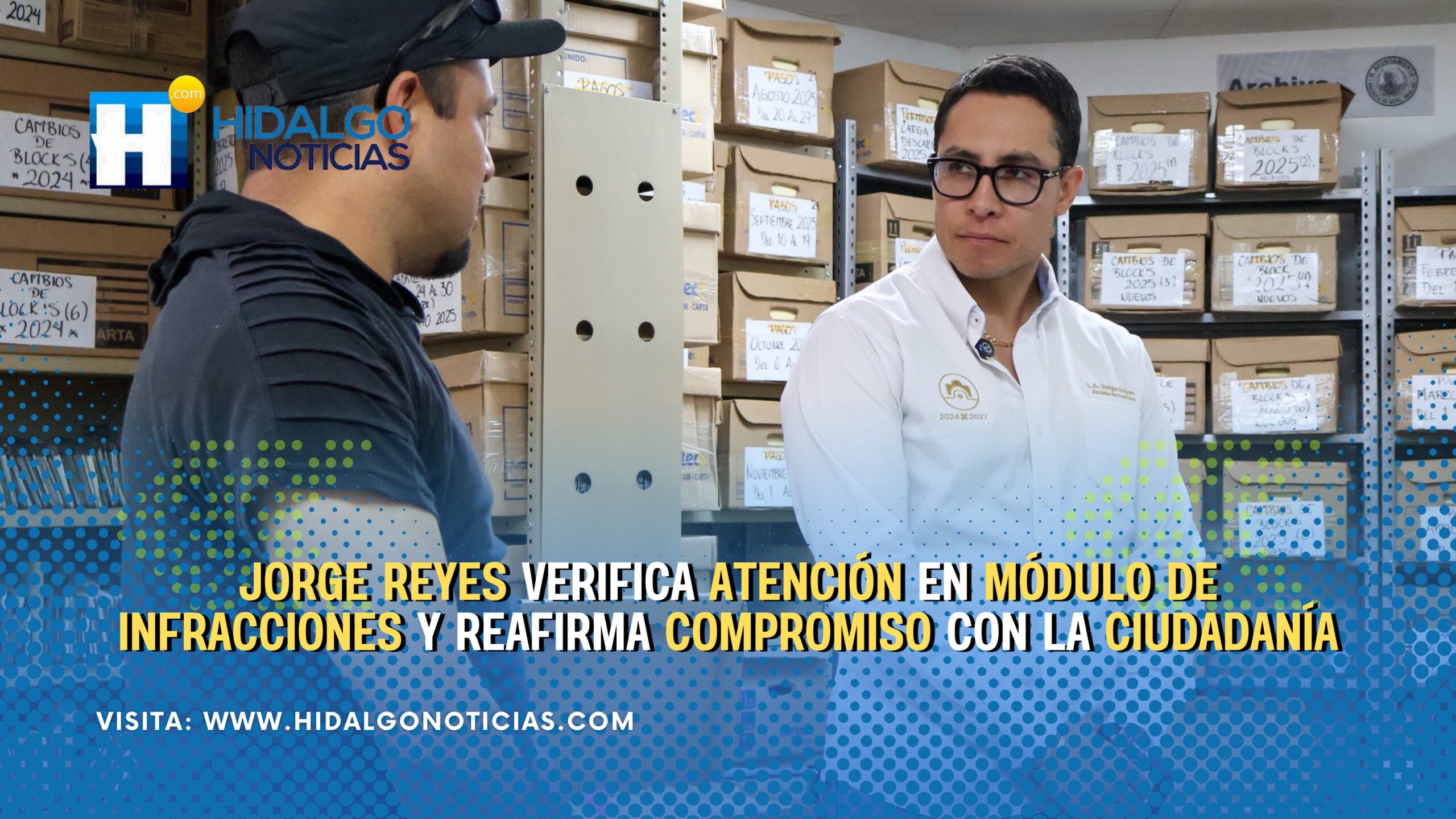 Pachuca de Soto, Hidalgo, 22 de noviembre de 2025.- El presidente municipal Jorge Reyes realizó una visita de supervisión al Módulo de Infracciones, con el propósito de constatar directamente el funcionamiento de las instalaciones y verificar que la atención a las y los usuarios se brinde de manera ágil, ordenada y con pleno respeto a sus derechos.