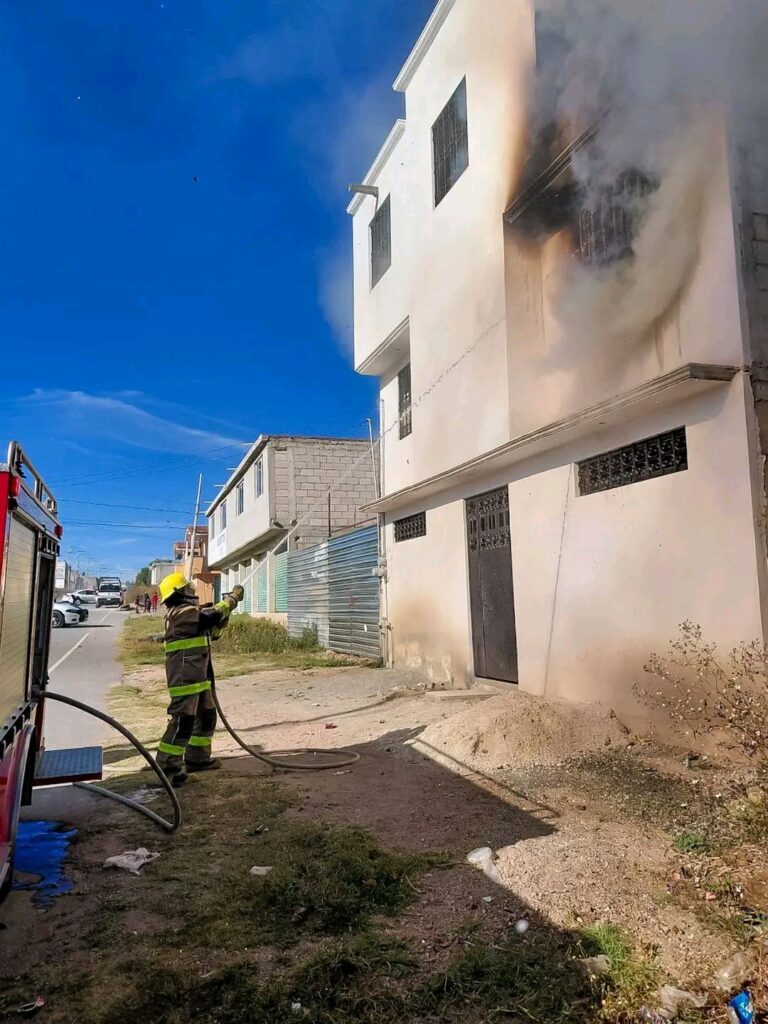 Pachuca, Hgo.— Elementos del Cuerpo de Bomberos de Pachuca sofocaron un incendio registrado en un domicilio deshabitado ubicado en la colonia La Loma, donde las llamas afectaron dos habitaciones del segundo nivel del inmueble.