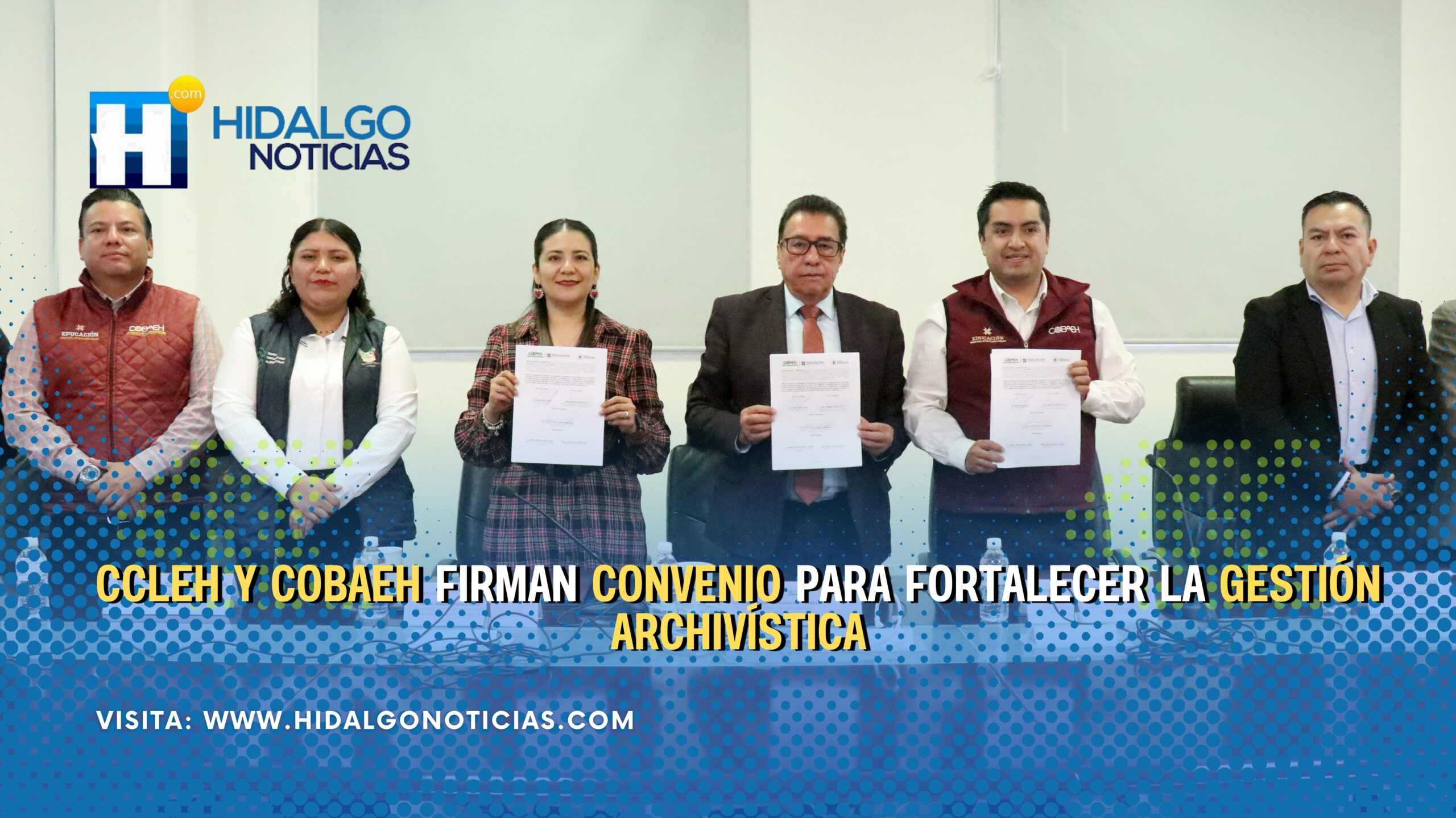 Pachuca, Hgo., 26 de noviembre de 2025.— Autoridades estatales oficializaron un acuerdo entre el Centro de Conciliación Laboral del Estado de Hidalgo (CCLEH) y el Colegio de Bachilleres del Estado de Hidalgo (Cobaeh), con el objetivo de fortalecer los procesos de organización documental y avanzar hacia un modelo de transparencia más sólido en la administración pública. La firma del convenio marcó el inicio de una serie de acciones orientadas a mejorar la forma en que las instituciones resguardan, preservan y gestionan la información que generan.
