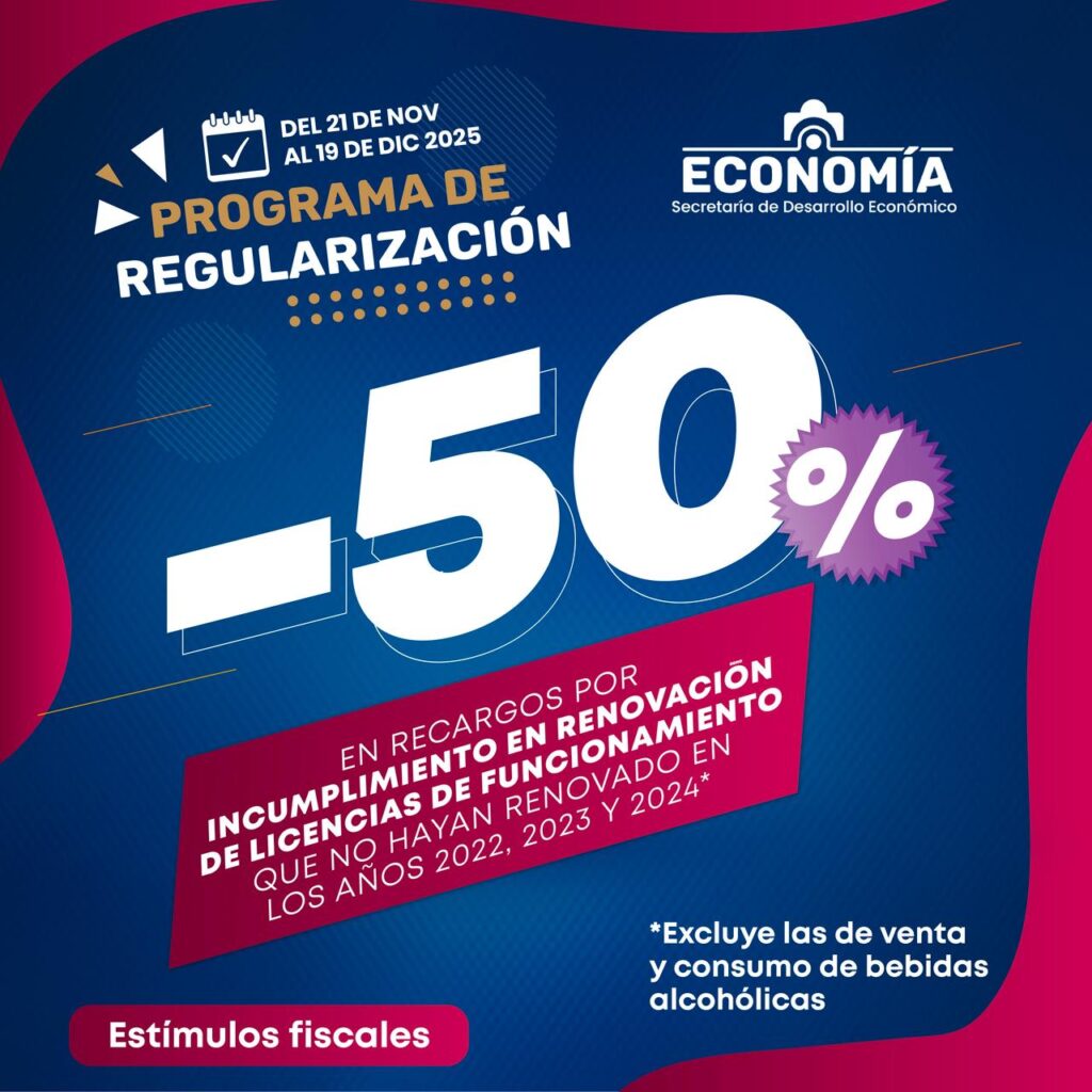 En cuanto a Desarrollo Económico, se contempla una disminución en recargos para quienes no hayan renovado en tiempo sus licencias de funcionamiento durante 2022, 2023 o 2024, salvo en el caso de giros vinculados con la venta y consumo de bebidas alcohólicas, que no forman parte de estos beneficios. Paralelamente, la Secretaría General, a través del área de Protección Civil, aplicará descuentos en opiniones técnicas de medidas de seguridad para giros ordinarios de superficie reducida, con el fin de incentivar la regularización de establecimientos en materia de prevención de riesgos.