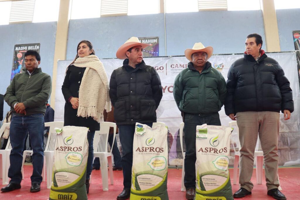 Entre los apoyos distribuidos se encuentran semilla certificada de maíz, semilla habilitada de avena, hijuelos de maguey, huertos familiares, vientres de oveja, aves de doble propósito, rollos de alambre, así como diverso equipamiento avícola, acuícola y pecuario, herramientas que permitirán a las y los productores fortalecer sus actividades y mejorar sus condiciones de producción.