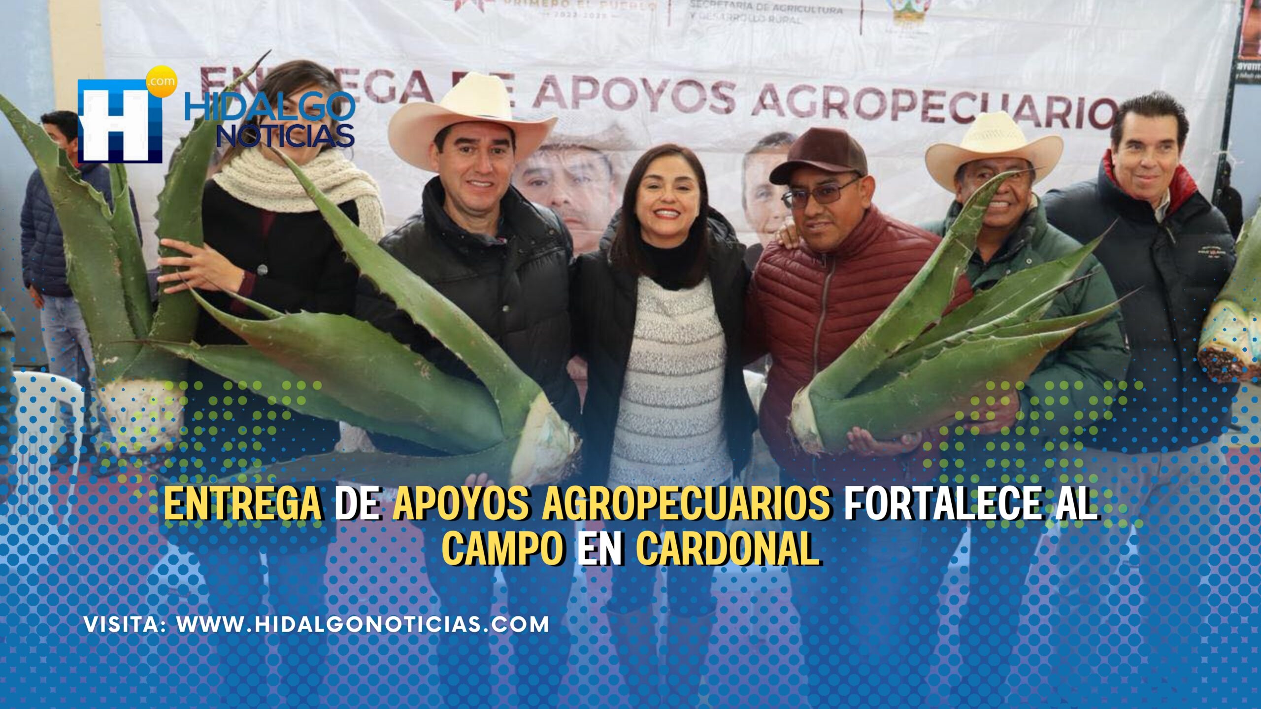 Cardonal, Hidalgo, 11 de noviembre de 2025.— Con la finalidad de fortalecer la productividad rural y reconocer el trabajo de las familias que sostienen la economía agrícola del estado, el municipio de Cardonal fue sede de la entrega de apoyos agropecuarios encabezada por el secretario de Agricultura y Desarrollo Rural, Napoleón González Pérez.