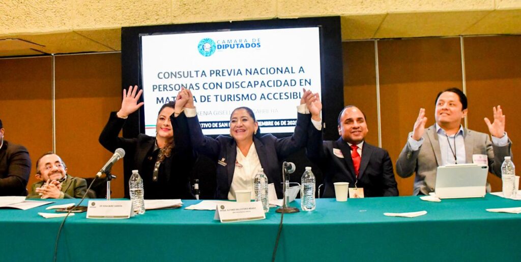 Durante su intervención, la diputada Kenia Giselle Muñiz celebró la presentación de tres iniciativas de ley en materia de turismo accesible, subrayando que “el turismo debe ser reconocido como un derecho humano, libre de barreras y exclusiones”. Estas propuestas conforman un paquete legislativo integral que busca consolidar un sistema turístico nacional accesible, justo y competitivo, garantizando el derecho de las personas con discapacidad a disfrutar plenamente de las actividades turísticas.