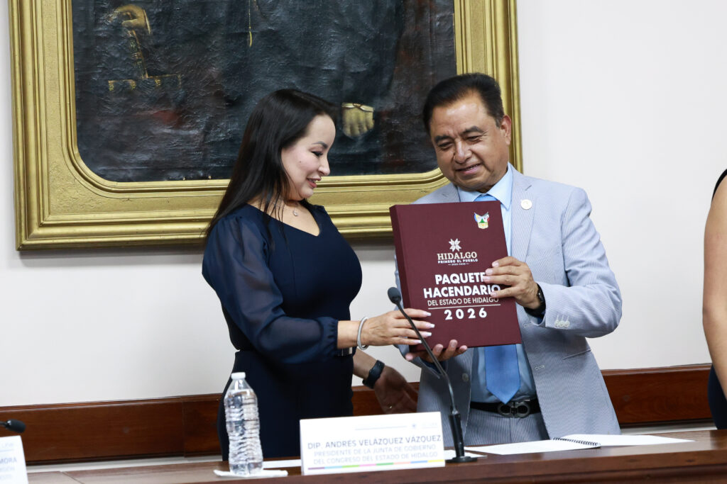 El documento, que integra la Iniciativa de Ley de Ingresos, el Proyecto de Decreto del Presupuesto de Egresos y la Miscelánea Fiscal, fue recibido por el presidente de la Junta de Gobierno, Andrés Velázquez Vázquez, y por el presidente de la Comisión de Hacienda y Presupuesto, Miguel Ángel Moreno Zamora, así como por otros integrantes del Congreso local, quienes serán los encargados de su análisis, discusión y eventual aprobación.