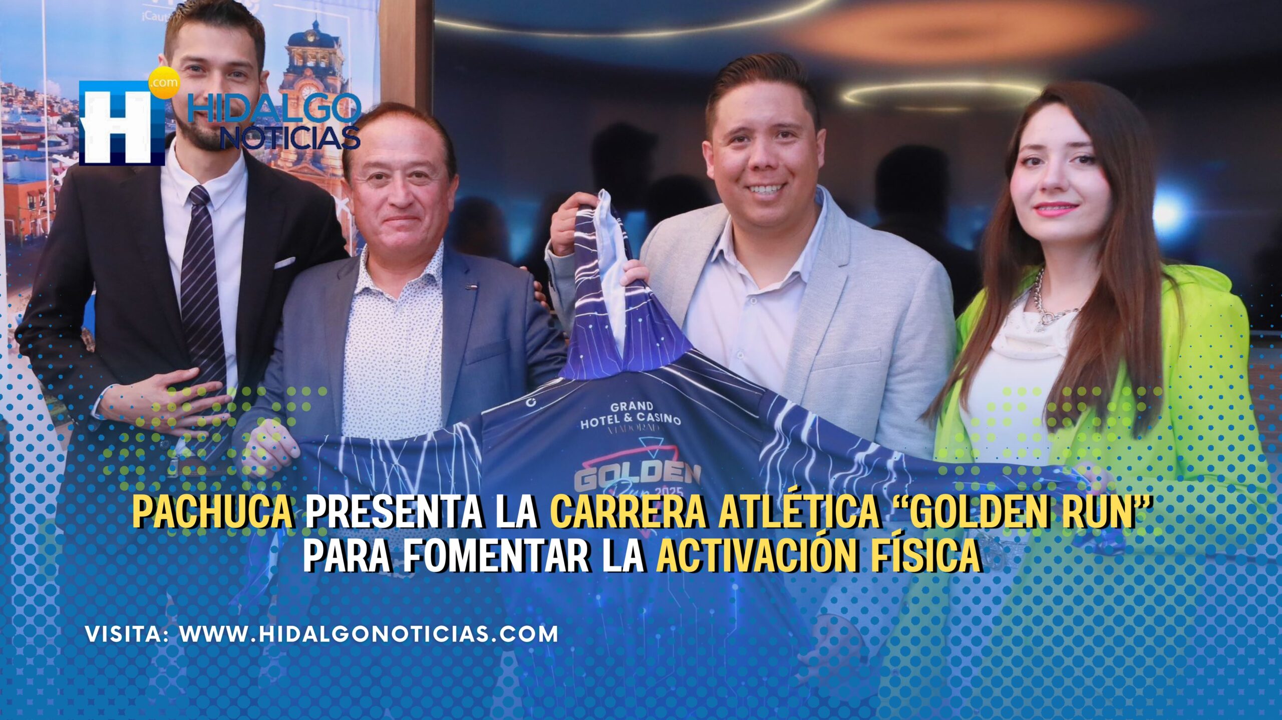 El municipio de Pachuca presentó oficialmente la carrera atlética “Golden Run”, que se llevará a cabo el próximo sábado 6 de diciembre a las 18:00 horas, como parte de las acciones destinadas a promover la activación física, la convivencia familiar y el fortalecimiento de la comunidad.