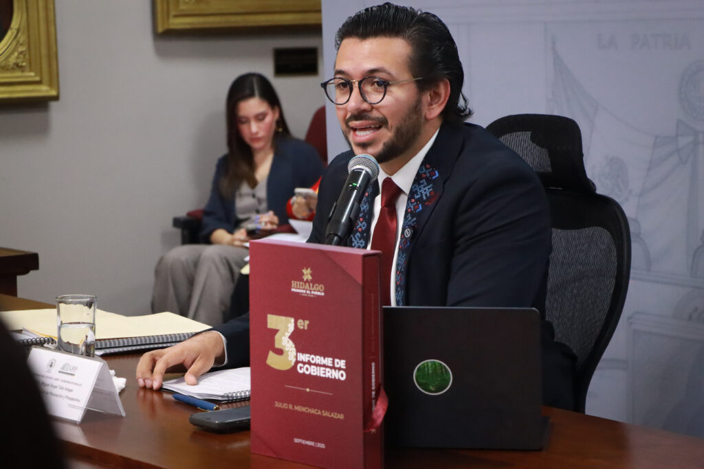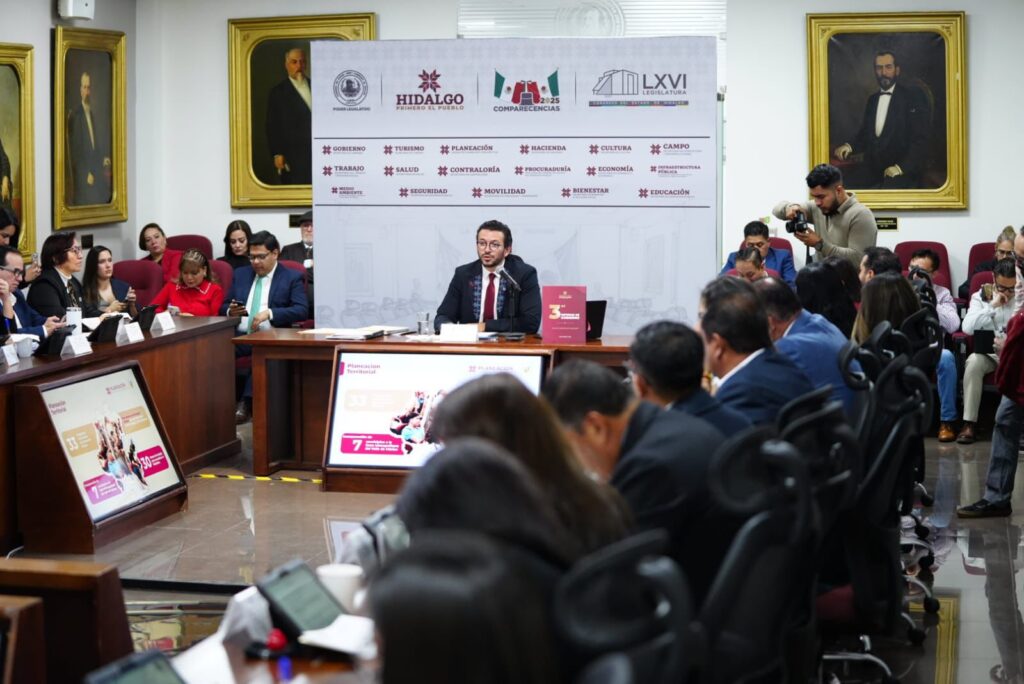 Pachuca de Soto, Hidalgo, 19 de noviembre de 2025.- Ante diputadas y diputados de la LXVI Legislatura, Miguel Ángel Tello Vargas, titular de la Unidad de Planeación y Prospectiva, presentó los avances de la dependencia en el marco de la glosa del Tercer Informe de Gobierno de Julio Menchaca Salazar, y afirmó que en Hidalgo la toma de decisiones se sustenta en la planeación y no en la improvisación.