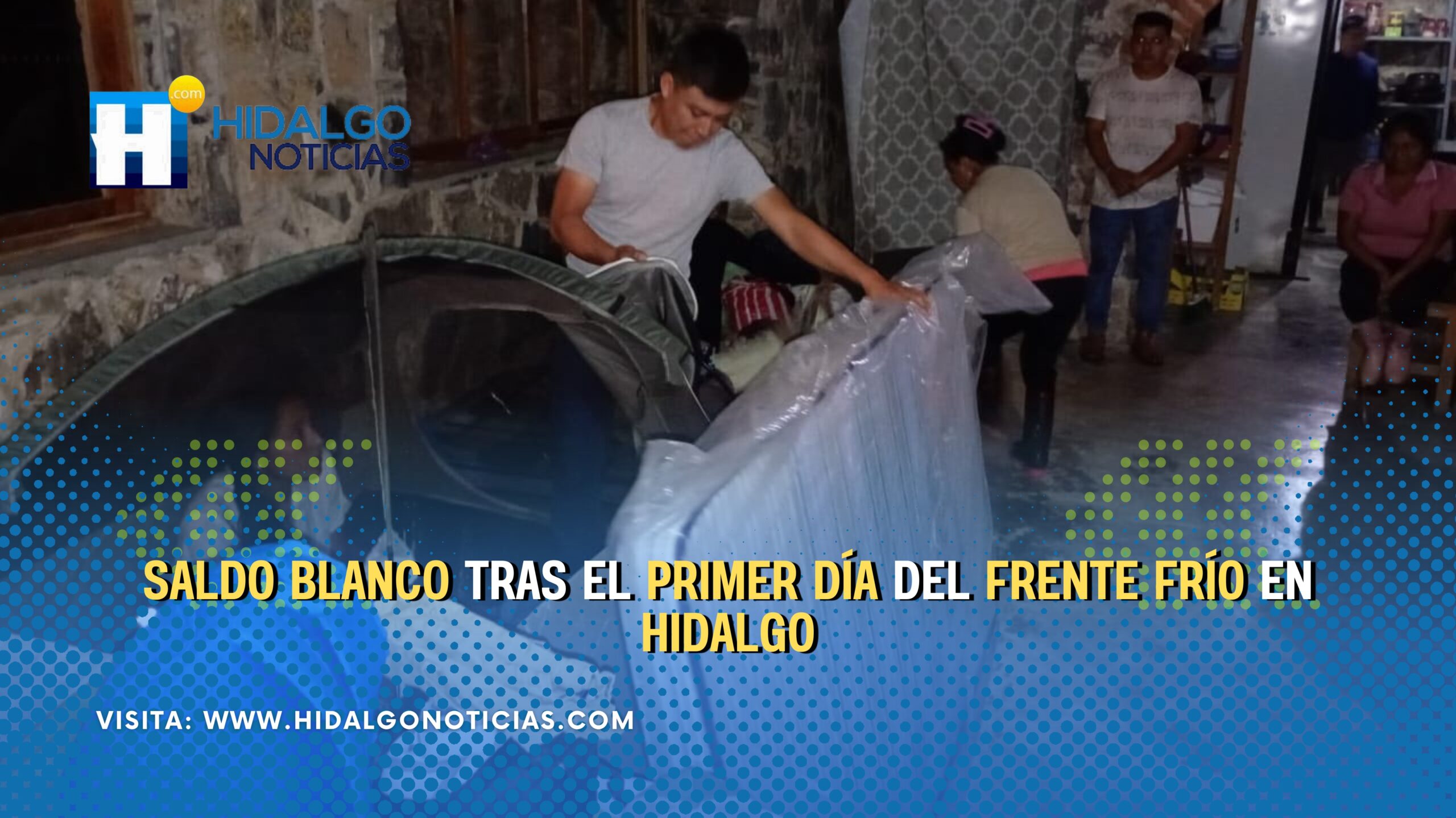 Pachuca, Hidalgo, 10 de noviembre de 2025.— El Gobierno del Estado de Hidalgo informó que, luego del paso del primer frente frío de la temporada, se mantiene un saldo blanco en toda la entidad, resultado de las acciones preventivas y del monitoreo constante realizado por personal de la Subsecretaría de Protección Civil y Gestión de Riesgos, en coordinación con corporaciones de seguridad y autoridades municipales.