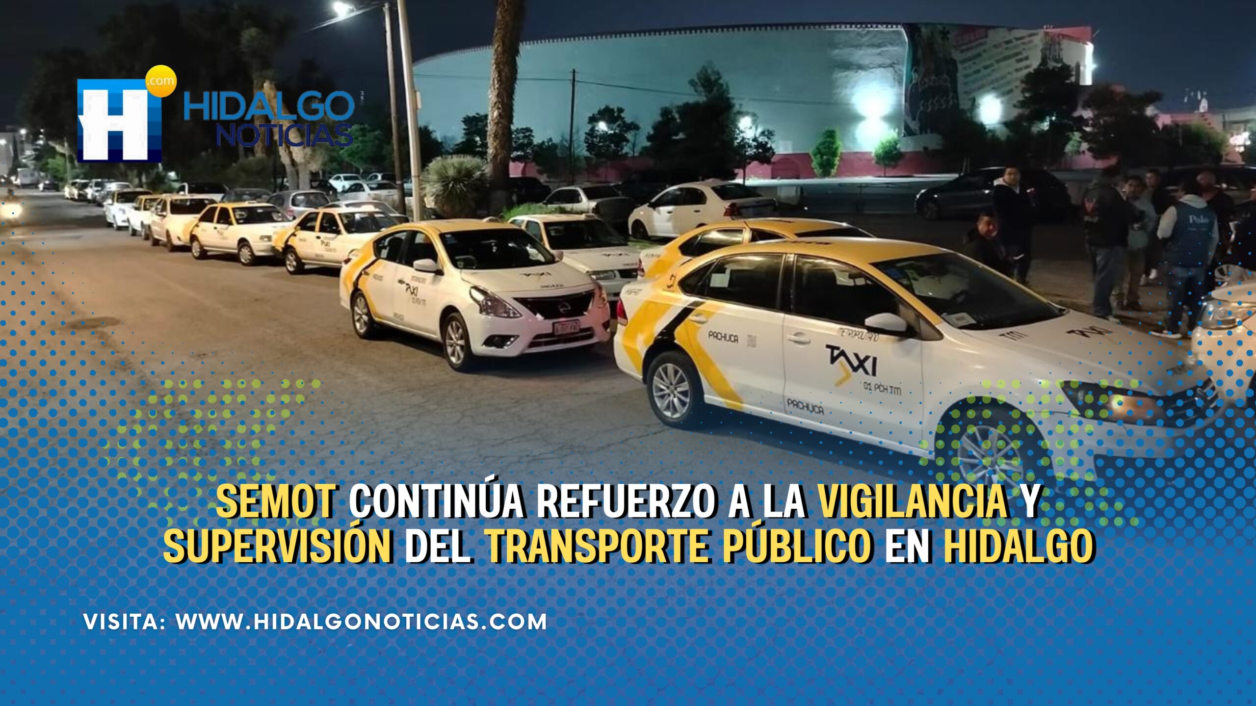 Pachuca, Hgo.— La Secretaría de Movilidad y Transporte de Hidalgo (Semot), a través del Sistema de Transporte Convencional de Hidalgo (STCH), informó que durante octubre de 2025 se intensificaron las acciones de vigilancia al transporte público en sus modalidades colectiva e individual, con la realización de 84 recorridos de supervisión en distintas regiones de la entidad.