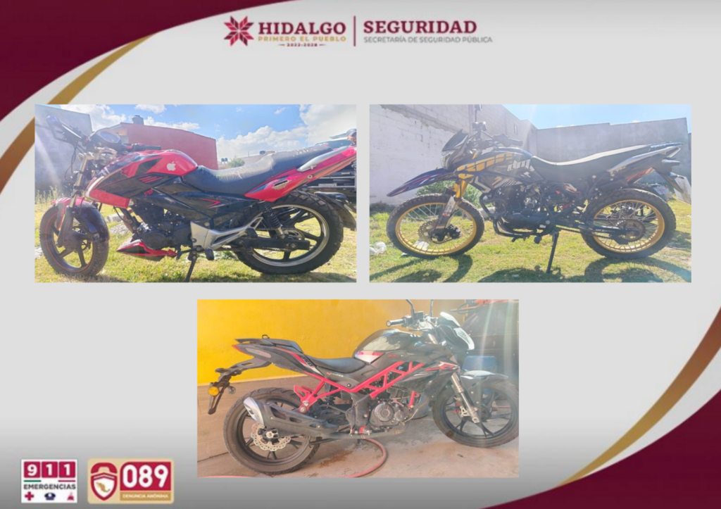 El operativo también derivó en el decomiso de una motocicleta presuntamente vinculada con los hechos, así como la identificación de otras dos motocicletas —una sin placas y otra procedente del estado de Guerrero— y una camioneta sin matrícula, unidades asociadas a las actividades ilícitas detectadas en el lugar.