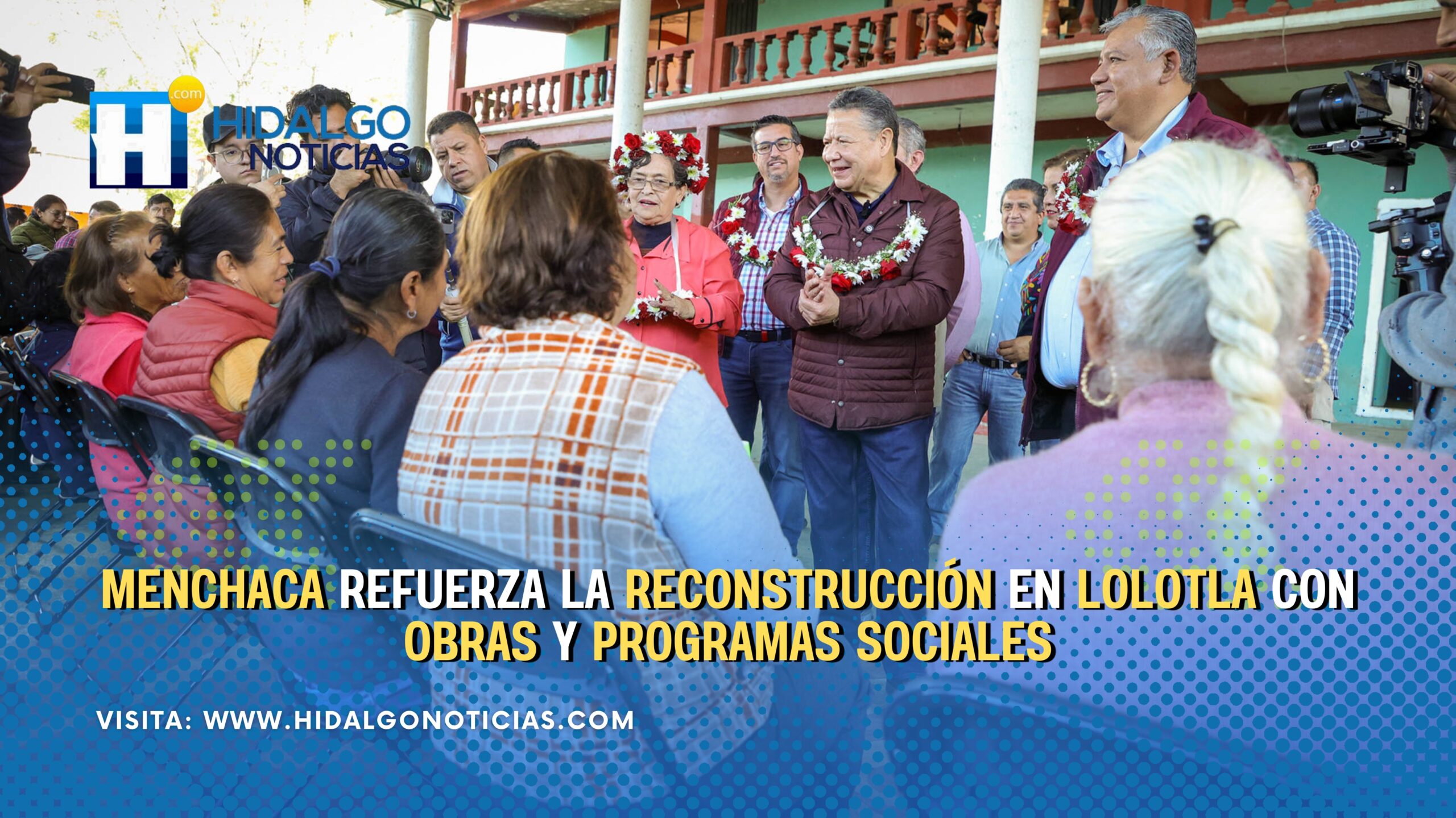 Diciembre de 2025, Lolotla, Hidalgo.– Tras las afectaciones provocadas por la vaguada monzónica en la Sierra Alta, el gobernador de Hidalgo, Julio Menchaca Salazar, acudió al municipio de Lolotla para formalizar el Plan de Reconstrucción que atenderá a 28 municipios impactados, además de anunciar una serie de obras y apoyos destinados a restablecer la infraestructura y fortalecer el bienestar de la población.