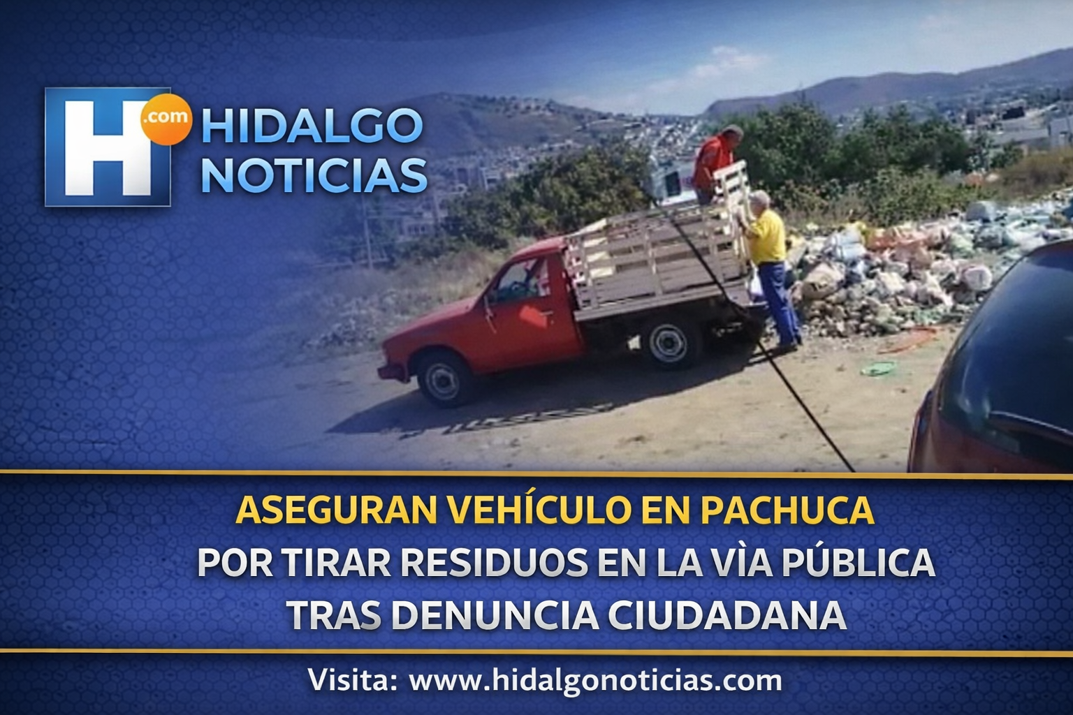 Pachuca, Hidalgo, 20 de enero de 2026.– En respuesta a un reporte ciudadano por la disposición irregular de desechos sólidos en la vía pública, el Ayuntamiento de Pachuca implementó un operativo de localización que derivó en el aseguramiento de una camioneta presuntamente involucrada en esta práctica.