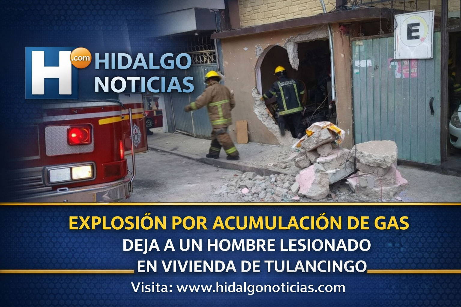 Enero de 2026, Tulancingo, Hidalgo. Un hombre resultó con lesiones en el rostro y en uno de sus brazos luego de registrarse una explosión al interior de una vivienda ubicada en la colonia Industrial, presuntamente ocasionada por la acumulación de gas en el inmueble.