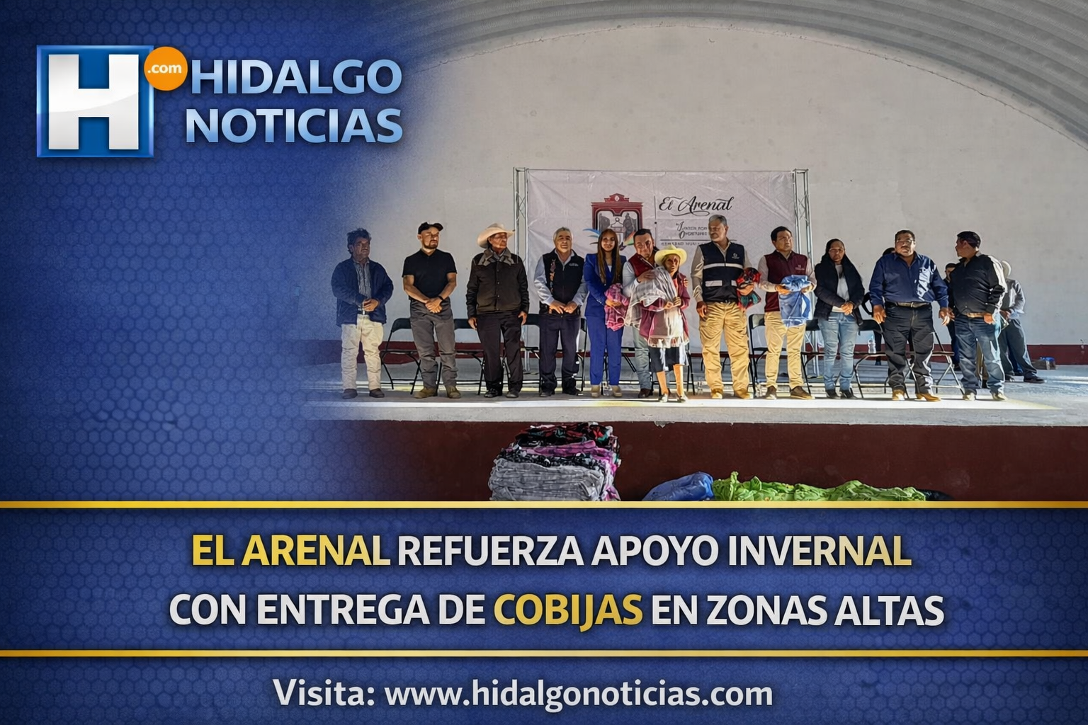 Enero de 2026, El Arenal, Hidalgo. El presidente municipal de El Arenal, Jensen Oropeza, encabezó la entrega de cobijas en diversas comunidades ubicadas en la parte alta del municipio, como parte de una acción preventiva y de apoyo social ante las bajas temperaturas que se registran en esta temporada. La actividad se realizó con el acompañamiento del subsecretario de Protección Civil y Gestión de Riesgos, doctor Román Bernal Díaz, quien acudió en representación del secretario de Gobierno, Guillermo Olivares Reyna.