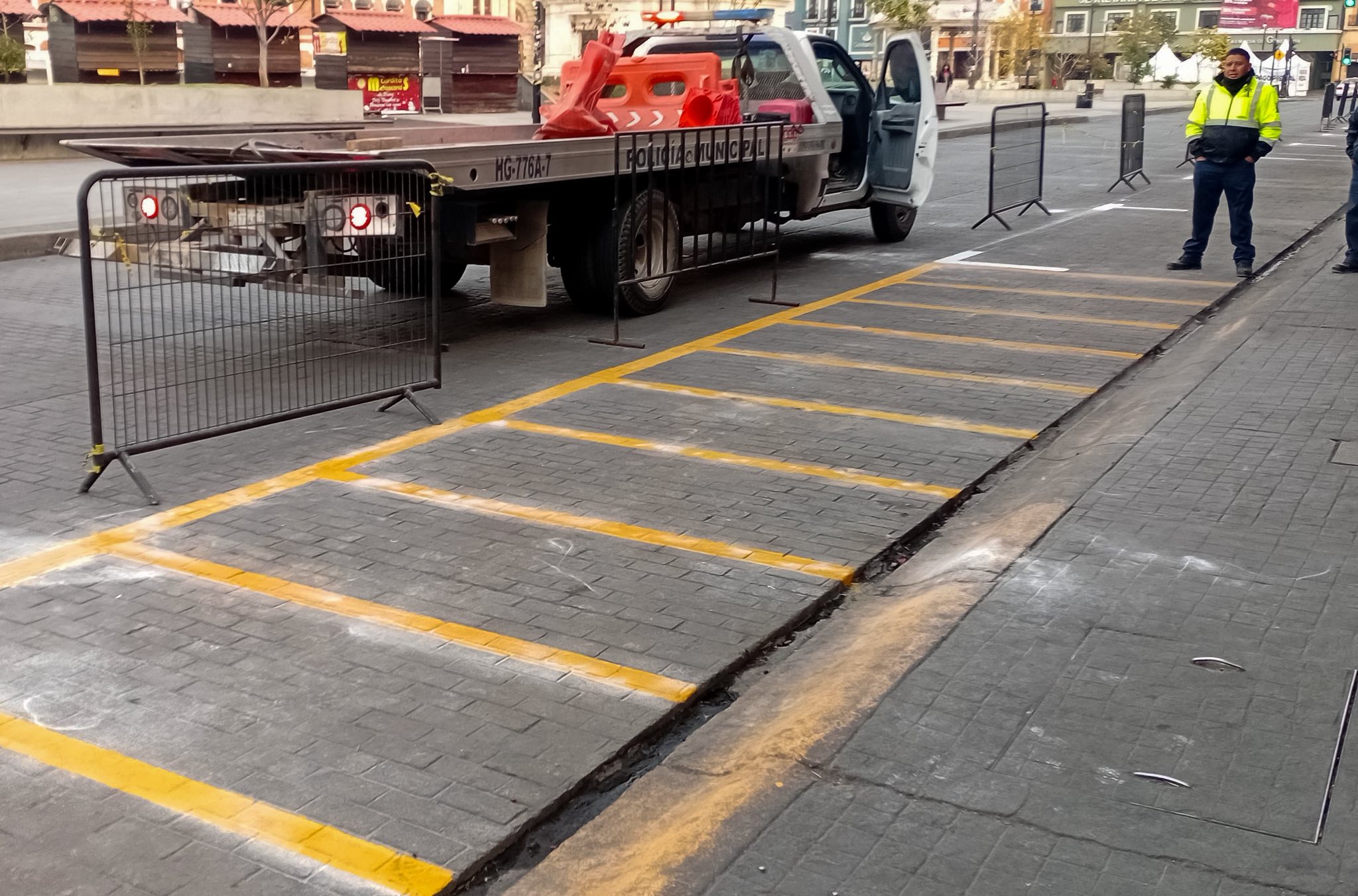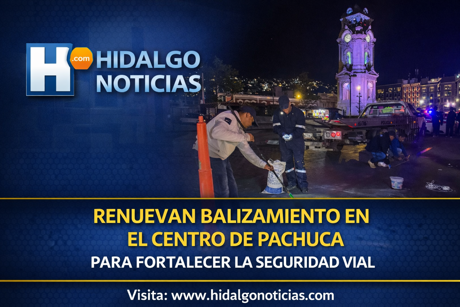 Pachuca de Soto, Hidalgo, enero de 2026. En días recientes, personal de la Secretaría de Seguridad Pública, Tránsito y Vialidad llevó a cabo labores de balizamiento en el entorno de Plaza Independencia, con el objetivo de optimizar la visibilidad de las marcas viales, ordenar el flujo vehicular y disminuir posibles riesgos para peatones y automovilistas.