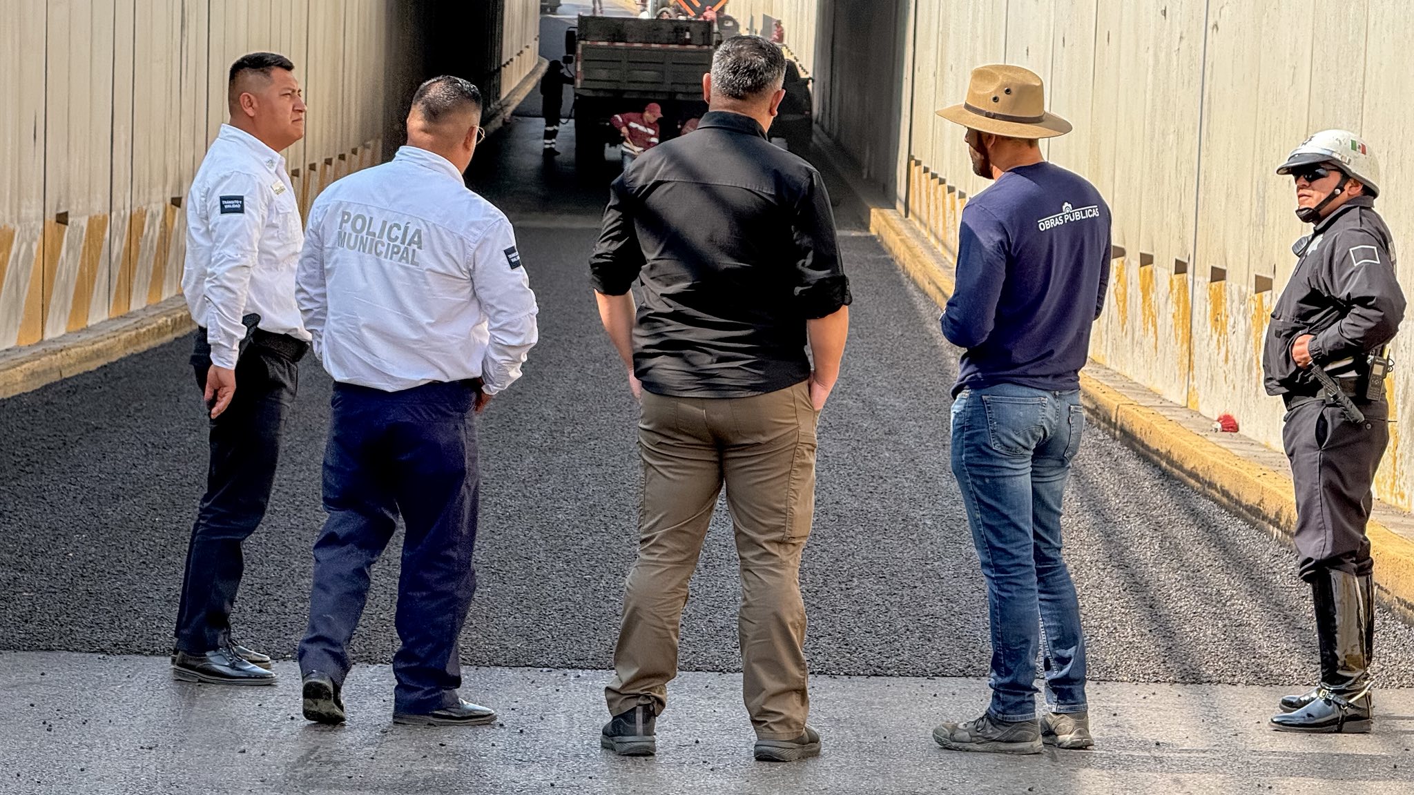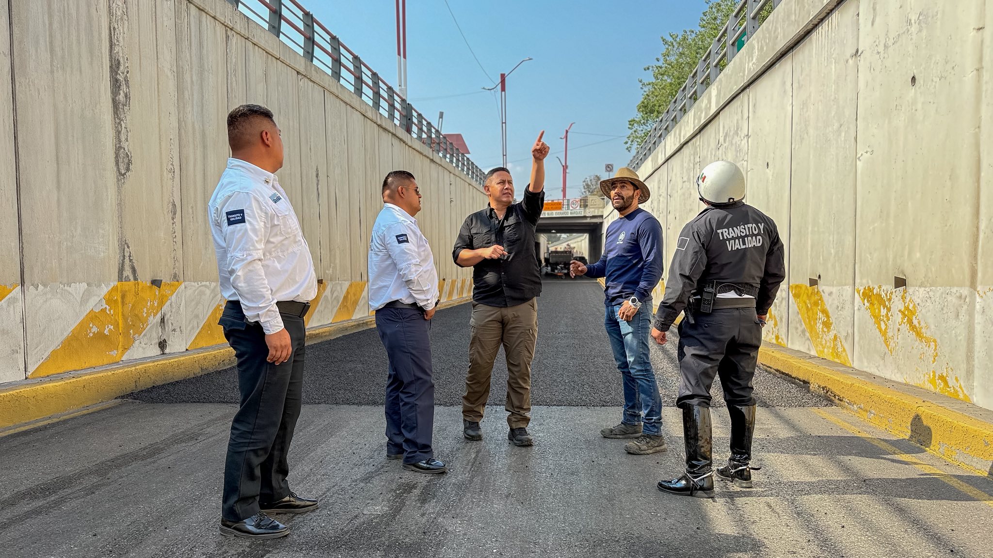 Pachuca de Soto, Hidalgo, enero de 2026. El municipio de Pachuca, en coordinación con la Secretaría de Infraestructura Pública y Desarrollo Urbano Sostenible, puso en marcha trabajos de riego de sello en el paso a desnivel de Río de las Avenidas, con el propósito de optimizar las condiciones de la carpeta de rodamiento y fortalecer la seguridad para quienes transitan por esta vialidad estratégica.