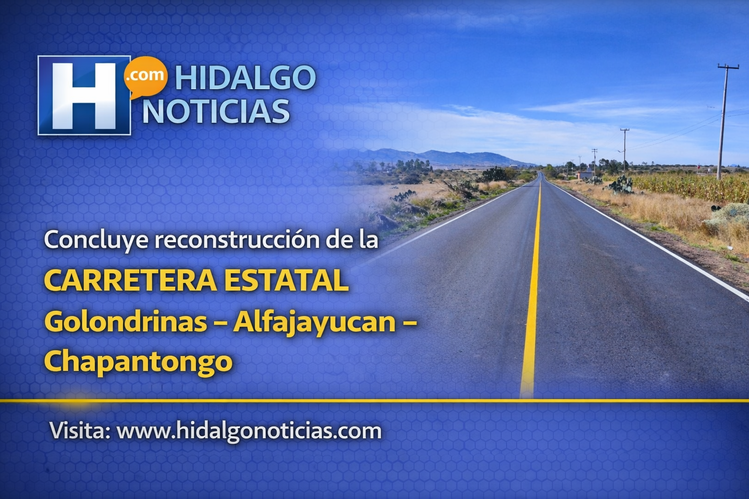 29 de enero de 2026, Alfajayucan–Chapantongo, Hidalgo. — Con una inversión de 20 millones 359 mil 482 pesos, la Secretaría de Infraestructura Pública y Desarrollo Urbano Sostenible (SIPDUS) concluyó la reconstrucción de la carretera estatal Golondrinas–Alfajayucan–Chapantongo, obra que mejora la conectividad regional y beneficia directamente a más de 4 mil habitantes que utilizan diariamente esta vía.